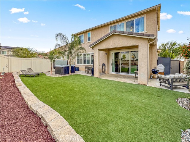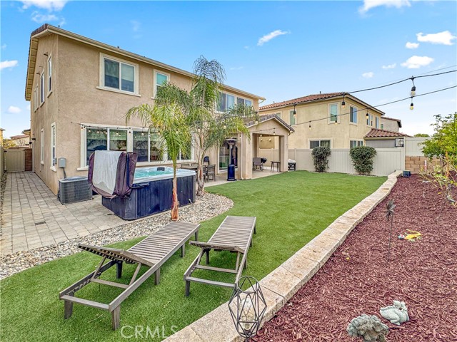 Stunning upgraded home in the highly sought-after Spencer’s Crossing community! This beautifully maintained residence features a downstairs bedroom and full bath, perfect for guests, in-laws, or a private home office. Inside, you’ll find upgraded flooring, designer blackout curtains, and a bright open-concept layout ideal for everyday living. The home also includes a whole-house water softener and two whole-house fans for improved comfort and energy efficiency. The backyard is your own private retreat with premium turf in front and back and a luxurious oversized spa—perfect for relaxing or entertaining. Located in Spencer’s Crossing, you’ll enjoy access to incredible community amenities including multiple pools, clubhouse, sports parks, playgrounds, walking trails, and year-round community events. Move-in ready, highly upgraded, and located in one of Murrieta’s top master-planned communities—this is a must-see!