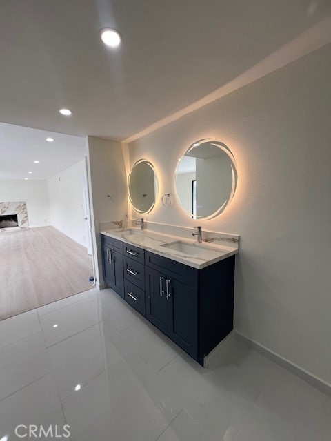 Beautifully Remodeled Home in a Prime Cul-de-Sac Location! This spacious 4-bedroom, 3-bathroom home with a 3-car garage has been fully upgraded and is truly move-in ready. A double-door entry welcomes you into an open floor plan featuring a spiral staircase with wrought-iron banisters, soaring ceilings, new laminate flooring throughout, and new interior and exterior paint for a crisp, modern feel. The living room seamlessly connects to the dining room while the recently renovated kitchen offers quartz countertops, a stainless steel sink and faucet, gas cooktop with overhead vent, tile backsplash and recessed lighting throughout the home. The oversized family room is perfect for gatherings, showcasing a cozy fireplace with marble accents and a custom mantle, plus a convenient wet bar. Enjoy indoor–outdoor living with the wraparound covered patio and look forward to new windows and sliders being installed soon along with newly completed landscaping. A downstairs bedroom provides flexibility for guests or multi-generational living. Upstairs, the expansive primary suite features its own fireplace and a private balcony with beautiful city-light views. The remodeled primary bathroom includes new cabinetry, dual sinks, LED lighted mirrors, a soaking tub and a step-in shower with designer tile and new glass doors. Two additional oversized bedrooms share an upgraded bathroom with quartz countertops and a walk-in shower. Additional property enhancements include a wide driveway, new roll-up garage doors, and a desirable cul-de-sac location within walking distance to shopping and restaurants and close to schools and golf course. This completely remodeled home offers modern comfort, thoughtful upgrades, and an exceptional location—don’t miss it!