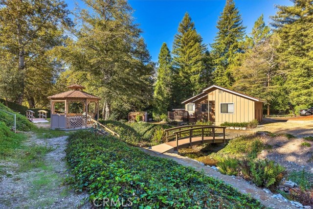 Multi-Use Rare Opportunity in Lytle Creek!!! Don’t miss this chance to own one of Lytle Creek’s most unique and well-maintained properties debuting for the first time on the market in over four decades. Imagine waking each morning to the gentle sound of a mountain creek running through your property and the scent of pine in the air. This is a charming 2 bedroom, 1 full bath home which sits on a private lot enhanced by quality improvements throughout the entire property. Walking through the upgraded Trex patio decking, inside you’ll find warmth in every corner from the open kitchen and living space designed for gathering with a cozy and warm pellet stove, to the abundant storage cabinets throughout this home. There are so many windows to allow natural light in and showcase the natural beauty. Two spacious bedrooms have delightful property views and there's a laundry nook conveniently located in the hallway. Just steps off the backdoor is a secondary vehicle carport down by the creek with an attached shop. There's also a massive oversized garage built in 2003 complete with a half bath, utility sink, workshop space with ample built-in storage cabinets, full electrical, attic, insulation, and rain gutters. Attached to it is a tall covered RV carport with ALL hookups including a 50amp outlet, sewer hookup, and water. Everything is permitted and built with craftmanship. The house roof was replaced in 2014 and most all of the plumbing, electrical, windows in the main house was replaced in 1985 when the permitted expansion took place. Across the serene bridges and behind the gazebo there's a back gate offering easy access to the town post office and local shops. This home perfectly blends tranquility, convenience, and proud craftsmanship. Don't forget we are only 7 miles from the 15 freeway, 1 1/2 miles away from the popular Bonita Falls Trail and Highland Events area, and 10 miles from Glen Helen Ampitheater.