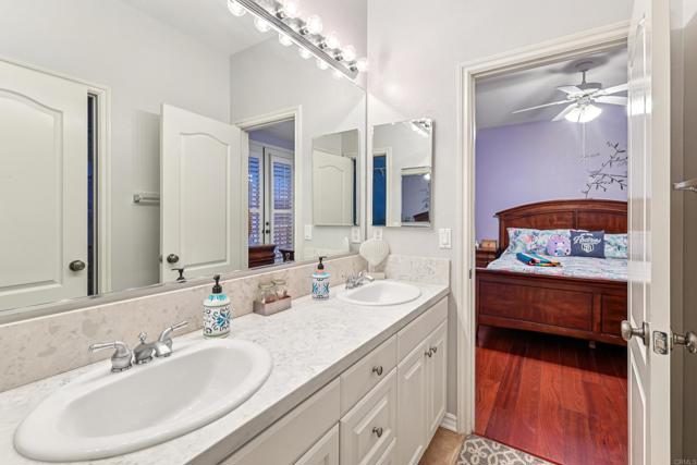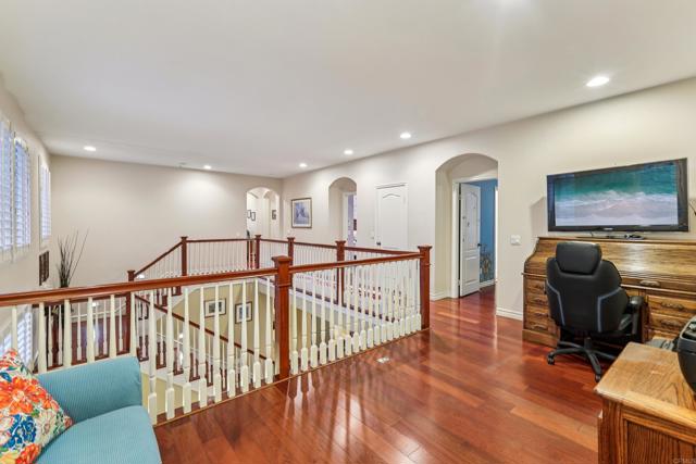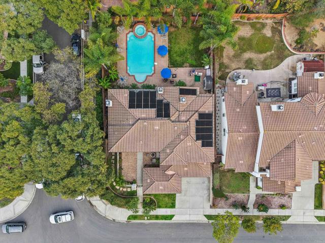 Experience refined living in this stunning 6-bedroom, 4.5-bath luxury residence perfectly positioned on a private corner lot in the heart of Rancho Peñasquitos. Thoughtfully designed for both elegance and comfort, this home offers exceptional indoor–outdoor living and an abundance of space for multi-generational needs. Step inside to a grand layout featuring formal living and dining rooms, a guest bedroom with full bathroom on the first floor, and an inviting open-concept kitchen and family room ideal for everyday living and entertaining. An upstairs loft provides additional flex space—perfect for a media room, playroom, or home office. The home’s generous bedroom layout includes two secondary bedrooms connected by a Jack-and-Jill bathroom, plus a spacious primary suite complete with a cozy fireplace, soaking tub, walk-in shower, and ample closet space. Outside, your private resort awaits. The expansive backyard features a sparkling pool and spa with waterfall, a built-in BBQ island, and multiple areas to relax and entertain. A charming front courtyard adds another serene space to enjoy morning coffee or evening gatherings. With owned solar, a highly desirable floor plan, and a location close to parks, top-rated schools, and local amenities, this exceptional property embodies luxury living at its finest.