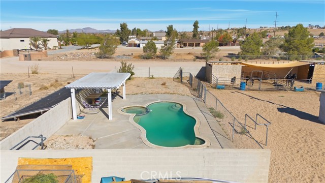 Sitting on an impressive 10 acres, this Apple Valley property is the definition of opportunity. Fully fenced with brand-new chain-link, it’s the perfect property for anyone dreaming of space, freedom, and true ranch living. The home itself offers 1,989 sq ft of comfortable living space with 3 bedrooms and 2 bathrooms. Inside, you’ll find a nicely updated kitchen and warm, inviting rooms that make the home feel welcoming from the moment you walk in. Already set up for horses, with two stables, a dedicated wash shed, and endless room to expand. This land gives you the flexibility to build additional barns, arenas, turnouts, workshops, or anything your lifestyle or vision calls for. Step outside and enjoy your private pool, perfect for hot Apple Valley summers, along with a massive driveway that easily accommodates RVs, trailers, or work vehicles. Whether you want to raise animals, create your dream ranch, store equipment, or simply enjoy the peace of having open land around you, this property offers endless potential. Let your imagination run wild! Your forever ranch starts here.