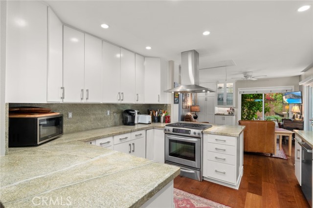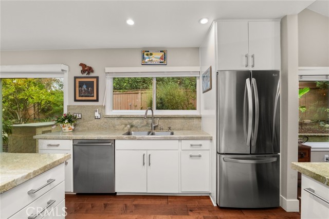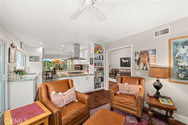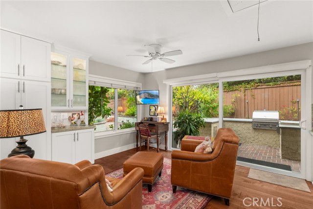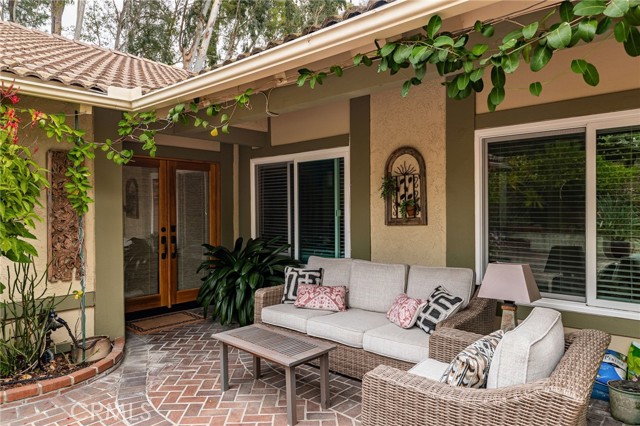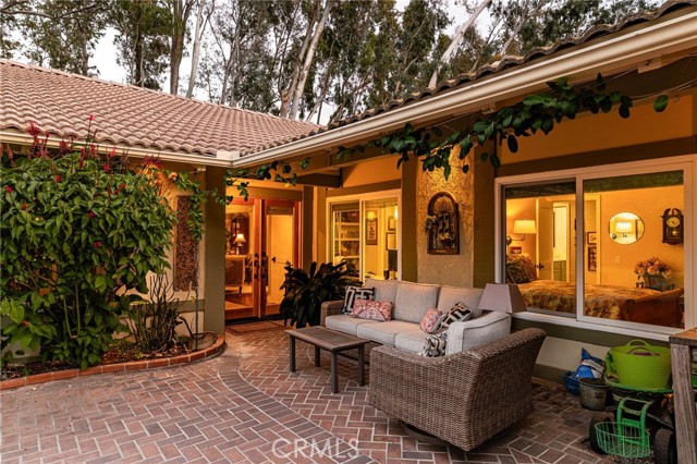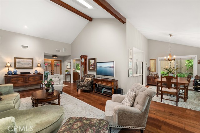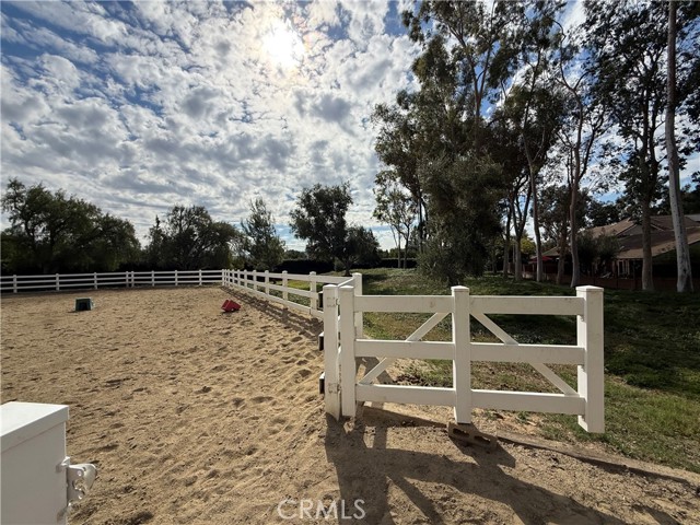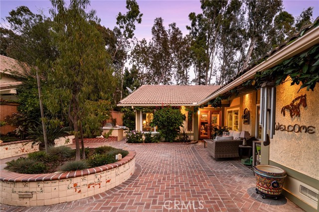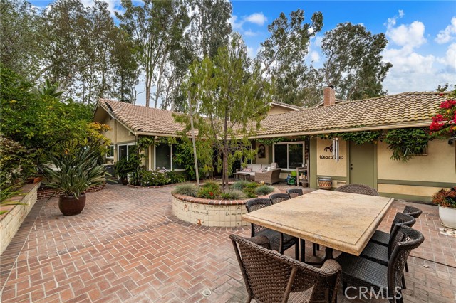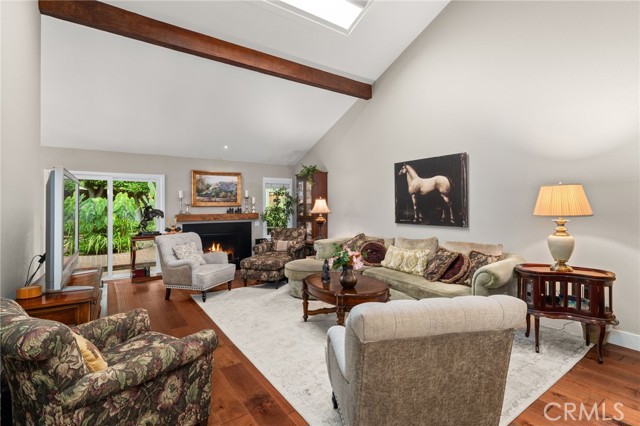 Welcome Home to Modern Living in the Heart of Orange Park Acres. Nestled within the private, gated equestrian community of The Wilderness, this remodeled home blends timeless craftsmanship with modern sophistication, creating a space that is both comfortable and refined. Step inside the large front courtyard, gated for privacy and seclusion—and enter through a custom double glass front door framed with gorgeous solid wood. Inside, you’ll discover new Milgard double-pane windows and large skylights that fill the home with natural light. All-new interior doors, casings, and moldings, while rich, wide-plank hardwood flooring flow throughout the living spaces. The formal dining room provides a setting for memorable gatherings, while the living room features art lighting and a fireplace with a wood mantle, creating a cozy atmosphere. Custom cabinetry and a built-in bookcase line the hallway, enhanced with quartz countertops that offer style and functionality. The chef-inspired kitchen seamlessly connects to the main living areas. The remodeled primary suite—complete with a large skylight and vaulted ceilings—offers a retreat with an expanded closet, dual-sink vanity, and a bathroom showcasing designer finishes, additional closet space, and high-end fixtures. Throughout the home, you’ll appreciate new lighting, custom window coverings, and details that define every space. Additional upgrades include a new furnace, water heater, and re-piping of the entire home, ensuring peace of mind. Vaulted ceilings and skylights create an airy, open ambiance, while the indoor-outdoor flow leads to a serene backyard oasis. The landscaped yard wraps around the home so you can enjoy al fresco dining outdoors, unwind by the built-in BBQ,watch the beautiful fish and Myrtle the Turtle in the pond, or relax on the expansive grassy area surrounded by mature trees and lush greenery. A spacious side yard offers even more room for outdoor enjoyment. The garage features built-in cabinetry for storage. As part of community, residents enjoy access to horse stables, riding arena and trails, and parking for RVs, trailers, and boats. This rare enclave offers tranquil country living—just moments from Peters Canyon, Irvine Regional and Santiago Oaks Park, and easy access to the 241/261 Toll Roads. Blending quality, comfort, and elegance, this extraordinary home invites you to experience Orange Park Acres living at its finest—a true sanctuary that must be seen to be appreciated.