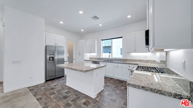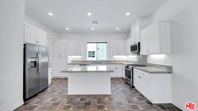 Introducing a newly built townhome in the vibrant Five Point Community of Valencia. This thoughtfully designed residence offers 2 spacious bedrooms and 2.5 bathrooms, perfect for modern living. The open floor plan features durable laminate flooring, recessed lighting, and ample storage throughout. The kitchen is a functional centerpiece, equipped with stainless steel appliances, granite countertops, custom cabinets, and a large center island ideal for additional cooking space or casual dining. The living and dining areas are bright and welcoming, with a private balcony to enjoy fresh air and outdoor relaxation.Upstairs, you'll find two primary bedrooms, each with its own bathroom and generous closet space. This home is packed with practical amenities, including a laundry room with newer appliances, a tankless water heater, an EV charger outlet, leased solar panels, and a 2.5-car garage. The Five Point community offers a range of amenities, such as an olympic-sized pool, spa, clubhouse, athletic fields, walking trails, and a BBQ area, ensuring there's something for everyone. Conveniently located near the 5 Freeway, Six Flags Magic Mountain, top-rated schools, and popular dining spots, this home combines modern comfort with everyday convenience.