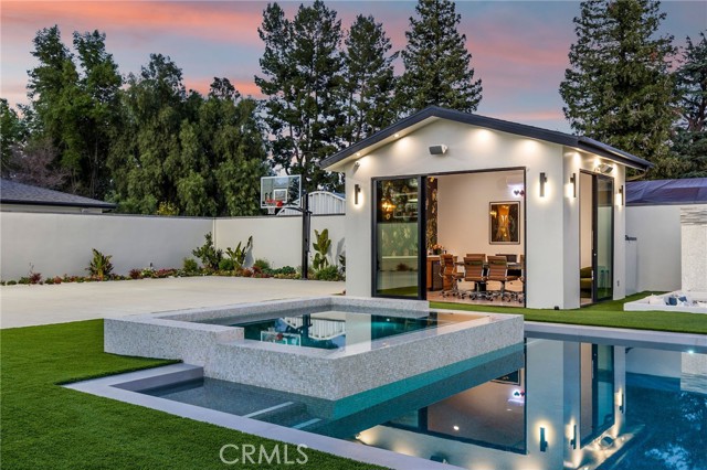 Stunning Luxury Estate in Walnut Acres – Over Half an Acre of Elegance & Opportunity! Discover the perfect blend of sophistication, privacy, and income potential in this newly constructed gated estate. Nestled on a sprawling lot in the coveted Walnut Acres neighborhood, this exceptional property features a grand 6,387 sq ft main residence. Main Residence Highlights: Elegant Design & Smart Living Soaring 12-ft ceilings, exquisite Venetian plaster walls, and a state-of-the-art Crestron smart home system throughout. Luxurious Comfort Cozy fireplace and a private theater room with plush seating for eight—perfect for movie nights or entertaining. Chef’s Dream Kitchen Equipped with a 6-burner range, premium appliances, expansive island, walk-in pantry, additional fridge, and a wine fridge. Spa-Inspired Primary Suite Includes a massive walk-in closet, indulgent soaking tub, and dual water closets for ultimate comfort. Spacious Upstairs Retreat Five bedrooms (three ensuite, two Jack-and-Jill), four bathrooms, and an oversized patio with serene views. Climate Control Every room enjoys individual temperature control with five dedicated AC units. Resort-Style Outdoor Living: Sparkling pool & spa Fire pit surrounded by lush landscaping Full outdoor kitchen and basketball court Unbeatable Location: Ideally situated near top-rated charter schools, upscale shopping, and entertainment hubs—enjoy all that Walnut Acres has to offer. Available for both short-term and long-term rentals. Contact me today for more details or to schedule your private tour.