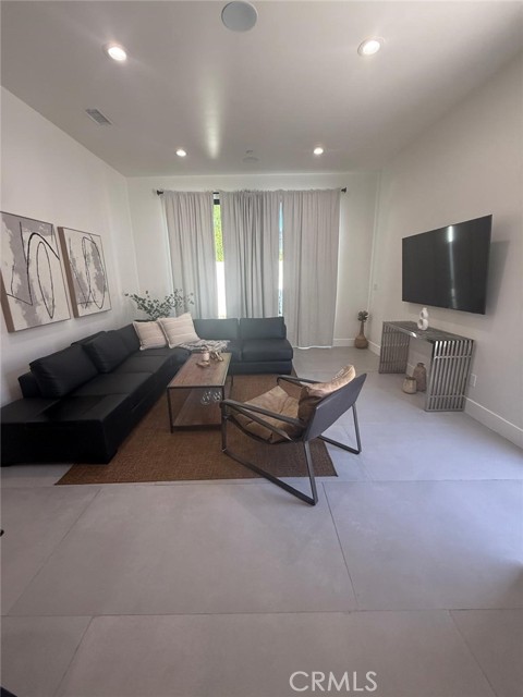 ADU: Fully furnished, this exquisite and secluded three-bedroom, two-bathroom house in Woodland Hills offers an idyllic retreat. Nestled down a private driveway, it provides a tranquil oasis with a private yard and enclosed patio, ideal for relaxation and outdoor dining. The generously designed layout features an open and inviting common living area, kitchen, and dining area, elegantly appointed with new furniture and a fully stocked kitchen. This spacious space is perfect for accommodating families and entertaining guests. The primary suite boasts privacy, comfort, and luxury amenities. It features a spacious walk-in closet, a luxurious bath, and a treadmill. The two secondary bedrooms are equipped with queen-sized beds, ample closet space, and all bedrooms and common areas are equipped with large TVs. This charming and private home is ready for immediate occupancy and welcomes long-term leases.
