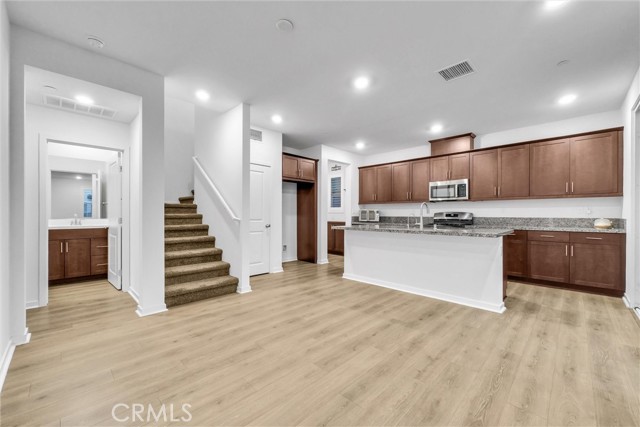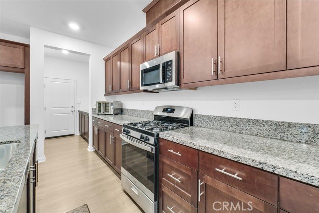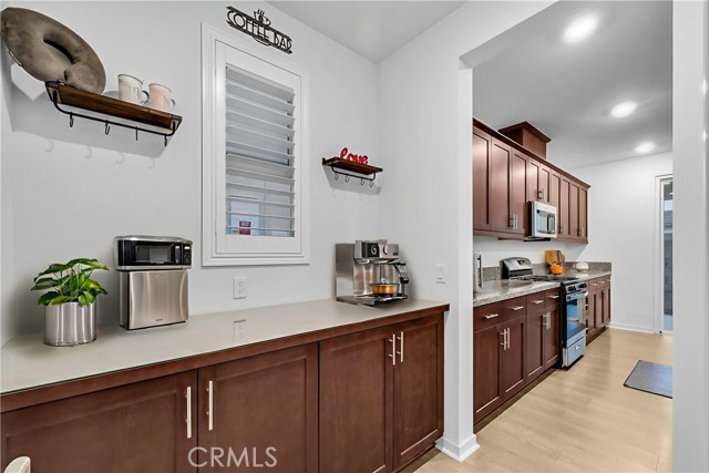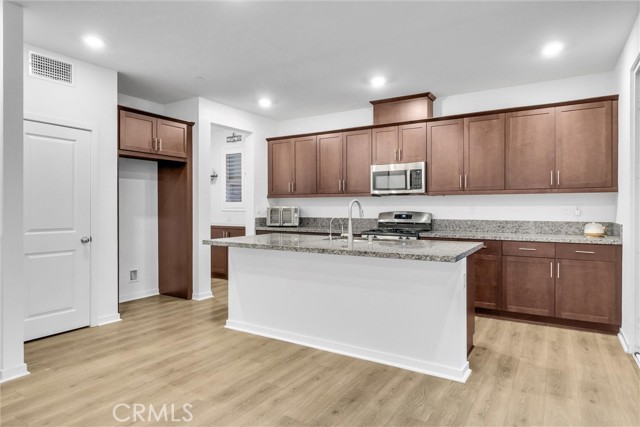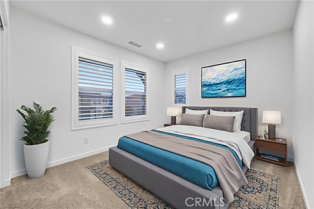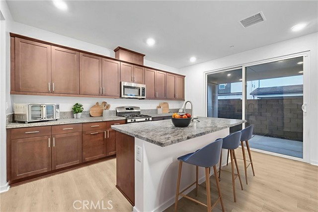 Welcome to this beautiful Serrano Plan 4 home, set on a premium lot by the park (a $15K upgrade), with no shared walls and fully paid-off solar. The open-concept gathering, dining, and kitchen area features a cozy island, extra cabinetry, and a walk-in pantry, with sliding doors leading to a spacious covered outdoor living space—ideal for entertaining or unwinding. The first floor also includes an additional bedroom for added flexibility. Upstairs, the large primary suite offers a walk-in closet, shower, soaking tub, and dual vanities, with two additional bedrooms, a full bath, loft, and laundry room just down the hall. Residents can enjoy the community pool, spa, and BBQ areas for ultimate leisure and relaxation. Located in one of the best school districts in Corona-Norco Unified, this home also offers close freeway access and is just 5 minutes from The Shops at Dos Lagos. With an attached two-car garage, luxury vinyl plank flooring, quartz and granite countertops, a tankless water heater, whole-home air filtration, and stylish designer finishes, this home is perfect for families of any size.