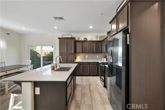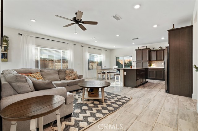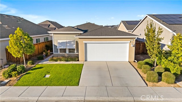 Positioned directly across from the park within Gossamer Grove, this 3 bedroom, 2 bathroom home blends modern finishes with practical design. Built in 2020, the residence features a desirable split-wing layout and an open concept living area that encourages an easy flow between the kitchen, dining, and living spaces. Upgraded tile flooring extends through the main areas, offering both durability and a clean, cohesive feel, while carpet in the bedrooms provides comfort underfoot. The kitchen is enhanced with an upgraded tile backsplash that adds a touch of style. Both the front and backyard are fully landscaped and well-maintained, offering inviting spaces for relaxing or entertaining. The home also includes leased solar, helping support affordable energy usage, and a tankless water heater, providing efficient, on-demand hot water. With its move-in-ready condition, curb appeal, and community setting surrounded by parks, paths, and everyday conveniences, this home offers an appealing and well-rounded opportunity in one of Shafter's most sought-after neighborhoods.