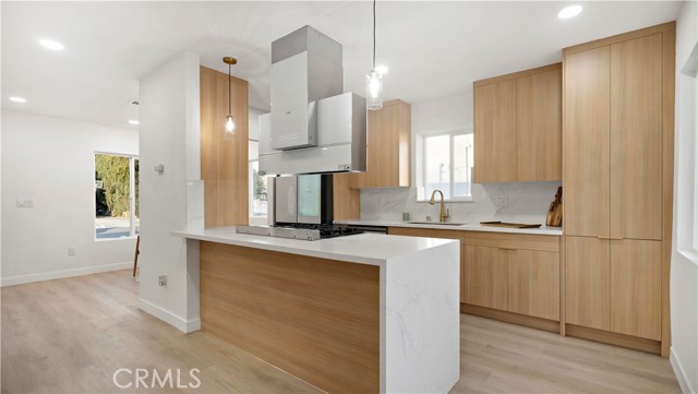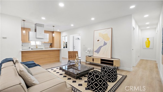 Welcome to this beautifully renovated single-story home located in a quiet and desirable Monrovia neighborhood. Thoughtfully updated with contemporary finishes and a bright, open layout, this residence offers turnkey living with style and comfort at every turn. Step inside to an inviting open-concept living space featuring new flooring, recessed lighting, and a seamless flow between the living room, dining area, and kitchen. The fully remodeled kitchen boasts sleek modern cabinetry, quartz countertops, stainless steel appliances, and a spacious peninsula perfect for casual dining and entertaining. This home offers Four well-appointed bedrooms and three stunning, fully updated bathrooms. Designer-quality bath features with a custom glass shower, gold fixtures, modern tile work, and a floating vanity. Every detail has been meticulously crafted to create a spa-like feel. The property sits on a generous lot with a beautifully maintained front yard, a long private driveway, and a detached two-car garage—offering incredible potential for additional storage or future ADU conversion (buyer to verify). The backyard and outdoor areas provide ample space for gatherings, gardening, or relaxing in the California sunshine. Located near parks, schools, shopping, dining, and easy freeway access, this home delivers both convenience and modern living in one of Monrovia’s most charming communities. Move-in ready and crafted with exceptional taste—this Monrovia gem is a rare opportunity you won’t want to miss.