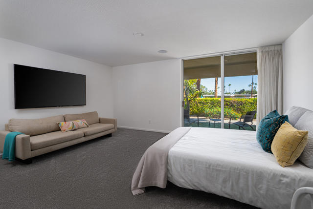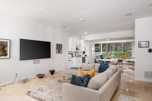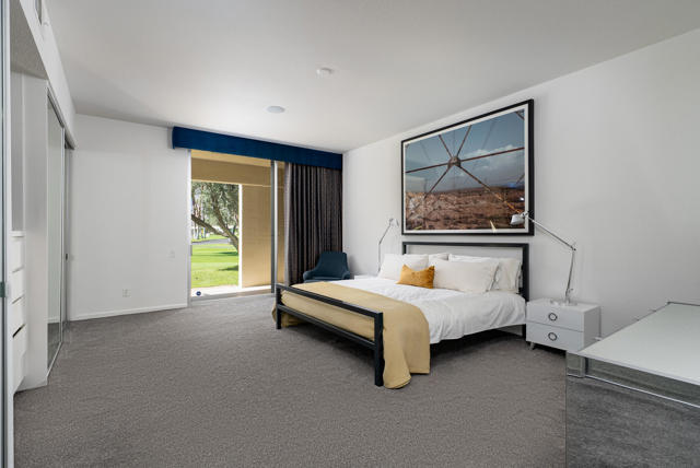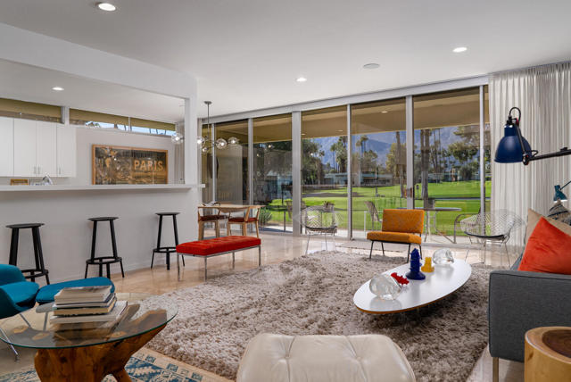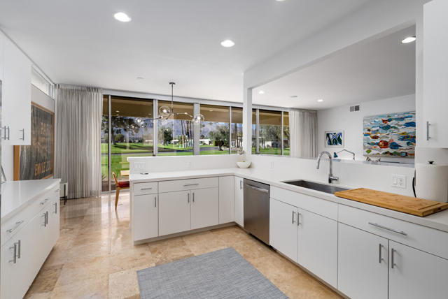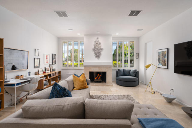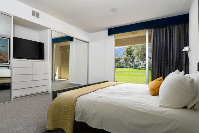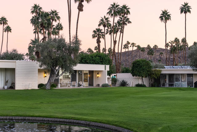 Perfectly sited on the West facing 16th fairway, in the most desirable floorplan at the coveted Seven Lakes Country Club, this perfect villa is just waiting for you to call it home! Surrounded by gorgeous new desertscaping, once inside you'll spread out over 2500 sq ft in this Richard A. Harrison designed 3bed/3bath. Past the shadow and breezeblock walls, the unit's airy layout is highlighted by large format tile floors that extend seamlessly onto your outdoor space. The huge kitchen has just been beautifully remodeled, including an inviting breakfast bar, to open into the spacious living and dining areas, where you can snuggle up by your fireplace on cool evenings. Your leisure deck offers sweeping Mt. San Jacinto and lake views, making this perfect a desert getaway you'll never want to leave! All three spacious bedrooms offer great closets, as well as walk in showers in both primary suites. Live with ease as recent upgrades include a newer main water line, laundry room, hot water heater, exterior sunshades and window screens. Out your door, the tranquil pool is just steps away. Past the 24-hour guarded gate, 'The Gem of the Desert' offers a unique elevated lifestyle with its Ted Robinson-designed 18-hole executive golf course, 15 pools and spas and lively William Cody designed clubhouse waiting to welcome you to its formal dining room, casual cocktail lounge and a terrace overlooking the famous Seven Lakes fountain. Welcome home!