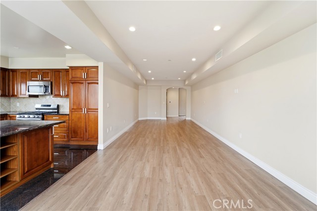Welcome to this spacious and beautifully designed top-floor end unit, offering exceptional privacy with 3 bedrooms and 3 bathrooms all on one level. The home features an expansive open floor plan, soaring high ceilings, and abundant natural light throughout. A formal entry leads you into a grand living and family room centered around an elegant fireplace, with direct access to a private balcony showcasing picturesque mountain views—perfect for relaxing or entertaining. The chef-inspired kitchen is generously sized and equipped with stainless steel appliances, custom cabinetry, and a walk-in pantry offering exceptional storage and organization. The luxurious primary suite is light, bright, and extremely spacious, featuring a custom walk-in closet and a spa-like bathroom complete with a separate glass-enclosed shower and soaking tub. The additional two bedrooms are oversized as well, each offering custom closet space and excellent flexibility for guests, family, or office use. Additional highlights include in-unit laundry, a large private balcony, extra storage, and the unique benefits of being an end unit, providing maximum privacy and only one shared wall. The fully secured building offers premium amenities, including a fitness center and a lush, serene courtyard. Perfectly situated in the heart of Toluca Lake—just minutes from Studio City, NoHo, and major studios—with quick access to the 101, 170, and 134 freeways.