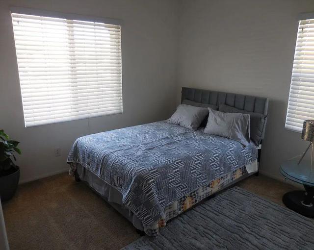 Warm desert light fills the main gathering area of this 3-bedroom, 2-bath home, creating a relaxed atmosphere for unwinding at the end of the day. Generous windows, carpeted comfort, and an easy open layout give you plenty of room to arrange seating, stretch out with a book, or host movie nights. A sliding door leads to the outdoor space, where morning coffee or evening breezes become part of your daily rhythm. Your kitchen sits just beside the living space, offering plenty of counter room to prep meals and serve friends. Casual bar seating makes quick breakfasts simple, while the nearby dining area invites slow dinners and easy conversation. Each of the three bedrooms offers a comfortable retreat, giving everyone a place to rest, focus, or simply enjoy some quiet. Two well-kept bathrooms add convenience, and your laundry with washer and dryer installed means chores stay efficient and out of the way. A 2-car garage offers additional storage and everyday ease. Youll be in Desert Hot Springs, surrounded by mountain views and close to the natural mineral spas the area is known for. Daily errands are easy with Stater Bros. Markets are nearby, and a quick drive brings you to Cabots Pueblo Museum, scenic hiking, and the dining and culture of Palm Springs just down Highway 62.
