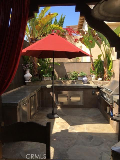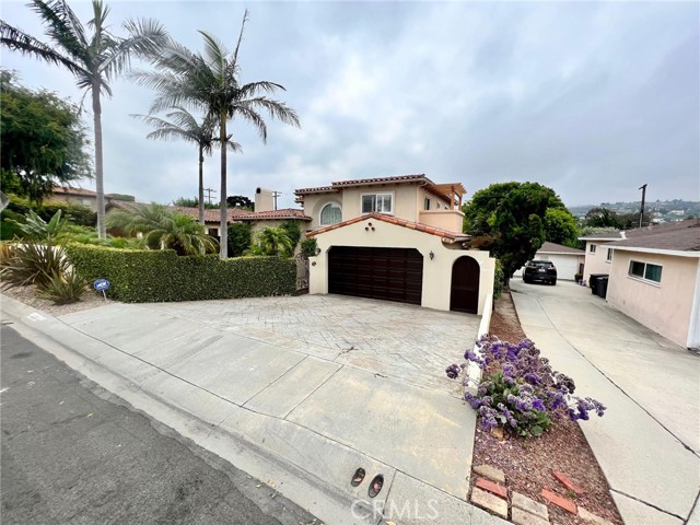 A Mediterranean beauty, at the peak of Hollywood Riviera Hills on a quiet tree lined street, views of Palos Verdes Estate Hills and peekaboos of Ocean from the top. Large, private, and sunken lot with multiple outdoor entertainment levels, totaling approximately 7,000 +- SQFT of usable living and entertaining space. Travertine and hardwood throughout, with a large kitchen with cooking island, and stainless steel appliances. Recessed ceilings and lighting, open, bright and grandly spacious feel. Formal living room, formal dining room, large sunny den, and a breakfast nook next to kitchen.... Outdoor kitchen with dual refrigerators, gas grill, charcoal grill, and covered pergola with romantic outdoor dinner seating for 12! Multiple courtyards, 2 equipped with stone outdoor fireplaces! Outdoor rotating lounge diner for rainy days...Wood burning Tuscan Pizza Oven..Two separate wine cellars for 2000+ btls. and wine tasting room. Too much to list...Don't miss on this special and rare listing.