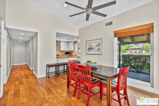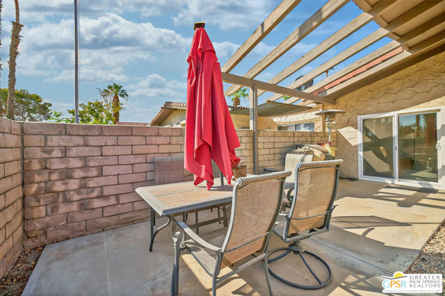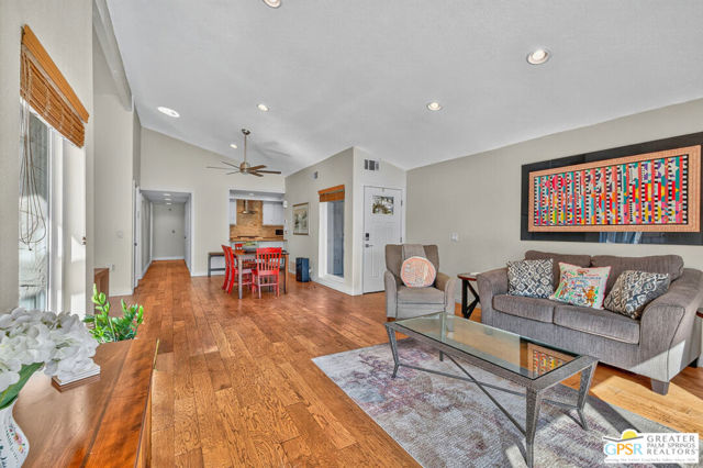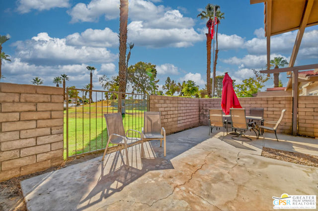 Rare corner-unit privacy at Indian Palms Country Club neighbors on ONE side only, with green space views from your spacious back patio. This beautifully updated 2-bed, 2-bath condo offers 1,494 sq ft of move-in-ready living with a flexible den (perfect 3rd bedroom/office), fresh kitchen, updated bathrooms, new flooring in primary bedroom, dual-pane windows, and NEW AC system for energy efficiency and year-round comfort. Prime location with community center across the street, pool/spa steps away, and 2 covered carport spaces included. Indian Palms offers true resort-style living with 27-hole championship golf course, full-service restaurant/bar, multiple pools/spas, tennis/pickleball courts, fitness center, 24-hour guarded gate security, and beautifully maintained grounds. Perfect for snowbirds, first-time buyers, retirees, investors (short-term rentals approved!), or second-home seekers. Minutes from Empire Polo Grounds (Coachella/Stagecoach), championship golf, Indian Wells Tennis Garden, shopping, dining, medical facilities, and I-10 access. Exceptional HOA value covers security, landscaping, pool/spa maintenance, clubhouse/fitness access, building exterior/insurance, water, and trash. Discover your perfect desert retreat at 48910 Eisenhower Drive! One or more photo(s) has been virtually staged.