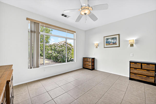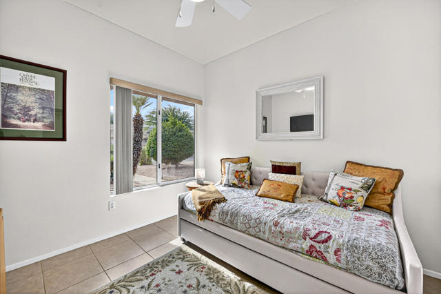 Lowest-Priced Home in Sun City Palm Desert - Investor Special! Calling all investors and value seekers -- this Limoges model is the lowest-priced home in Sun City Palm Desert, one of the desert's premier 55+ active adult communities! Featuring 2 bedrooms, 2 bathrooms, and 1,045 square feet (EST.), this home offers solid bones, timeless design, and endless potential. The kitchen boasts granite countertops, stainless steel appliances, and a window over the sink overlooking the front yard lemon tree. An open-concept layout seamlessly connects the kitchen, dining, and living areas for easy entertaining and relaxed desert living. The primary suite includes a step-in shower, walk-in closet with organizers, and a sleek modern vanity. The guest bedroom is located down a separate hallway with convenient access to the guest bath. Enjoy a north-facing backyard offering privacy with mature trees and a cozy covered patio--perfect for relaxing or future outdoor upgrades. Partially furnished, this home is move-in ready and ideal as a full-time residence, seasonal getaway, or investment property. Just a short golf cart ride to the clubhouses, golf courses, and resort-style amenities Sun City Palm Desert is renowned for--pools, tennis, pickleball, bocce, restaurants, fitness centers, and countless social clubs.