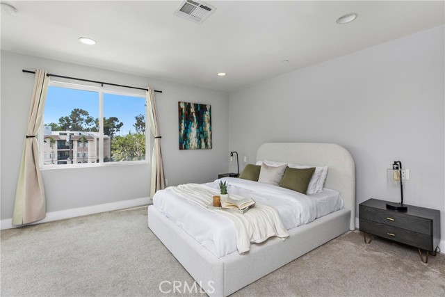 Spectacular 3BD/3.5BA townhome south of the Boulevard in Studio City! This beautifully maintained, move-in ready home features soaring ceilings and an abundance of natural light throughout. The chef's kitchen is a dream, boasting granite countertops, stainless steel appliances, and a spacious walk-in pantry. The inviting living room includes a cozy fireplace and opens to one of three private patios, perfect for indoor-outdoor living. Upstairs, the expansive primary suite offers a spa-like bath, a large walk-in closet, and access to a second private patio. Also on this level: a second bedroom with its own full bath, plus a convenient in-unit laundry area. The top floor features a third bedroom with an en-suite bath and a private patio with breathtaking views of the hills. Additional highlights include two side-by-side parking spaces, a private storage unit in the garage, guest parking, a community patio with BBQ, a recreation room with gym equipment, and dedicated bike/stroller storage. Just moments from all the shopping and dining along Ventura Boulevard and located within the coveted Carpenter Elementary School district, this one won't last!