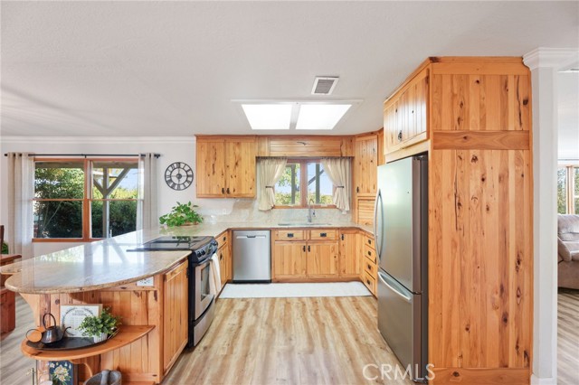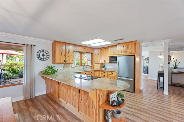 Homes with this much charm, character, warmth, and possibility rarely come to market. Overlooking open cattle pasture with no front neighbors and peaceful views of the Sierra Nevada mountains, this beautifully updated property offers comfort, function, and endless opportunity. Inside, you’ll feel the coziness the moment you walk in, with a light-filled layout featuring large picture windows and beautiful French doors. The kitchen includes a built-in hutch, granite counters, stainless steel appliances, and gorgeous custom knotty alder pine cabinetry with pull-outs, lazy Susan, and a stand-mixer lift for maximum functionality. Each bedroom has its own sliding door with gorgeous views of the yard. The primary bathroom was completely remodeled in 2024 with an expanded shower. Incredible features include newer vinyl plank flooring, crown molding, updated lighting, PEX plumbing, a whole-house fan, a newer 4-ton electric heat pump, a 550 ft steel-cased well installed in 2020 and a 50 year composition roof. Outside is a dream for anyone wanting space, livestock, or the freedom to create whatever they can imagine. The property is full of possibilities with multiple carports, a 30x40 pole barn perfect for a future shop, and a semi-finished ~670 sq ft barn with 220 power offering exciting ADU potential. Not to mention its horse-ready with an approximately one-acre fenced pasture. Additional exterior features include two custom iron automatic entry gates, plus a third roll gate with a long drive-through to the back of the property, a chicken coop, landscaped yards, fruit trees and a wood garden box ideal for vegetables, herbs, or flowers. There’s also plenty of room for a pool, toys, RVs, or future additions. The wrap-around alumawood patio, stamped concrete, landscaping, and gas fire pit create the perfect setting for relaxing, entertaining, and enjoying your own backyard retreat. The home also includes solar for enhanced energy efficiency and lower utility costs. What more could you ask for?! Too many details to list - contact your Realtor for the full list of improvements and possibilities!