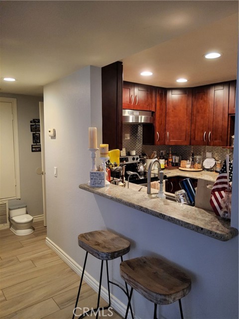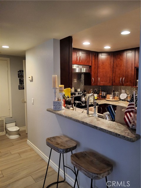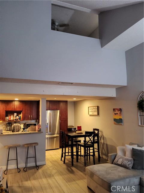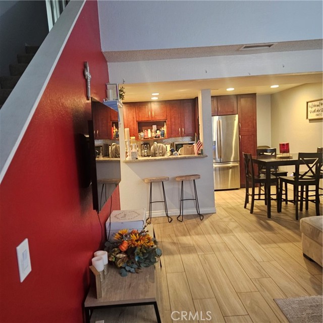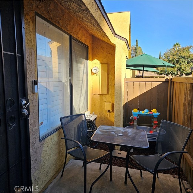 Welcome to the sought-after Pepperdale Community, where comfort meets convenience. This inviting condominium offers 3 bedrooms and 2 baths, highlighted by tall ceilings and recessed lighting that create an open and airy atmosphere. A spacious patio greets you prior to entering your home, providing the perfect extension of living space. The kitchen features rich cherry wood cabinetry with brushed nickel hardware, polished granite countertops, a metallic mosaic backsplash, and stainless steel appliances including a freestanding electric range and a curved glass range hood. Recent kitchen and flooring improvements add modern style and functionality, while central air conditioning ensures year-round comfort. Plantation shutters in the family room add timeless elegance and privacy. An option is available to add your own or purchase the existing GE Profile Smart Washer & Dryer Combo featuring ventless heat pump technology. Detached spacious 2 car garage, multiple community laundry areas, well manicured grounds, gated pool and heated spa, club house with restrooms. Behind the community lies the scenic Pacific Electric Inland Empire Trail, offering miles of walking, biking, and outdoor enjoyment. The Pepperdale Community is known for its quiet and peaceful setting, with close proximity to local amenities, shopping, and dining. A perfect blend of location and lifestyle makes this home an exceptional opportunity.