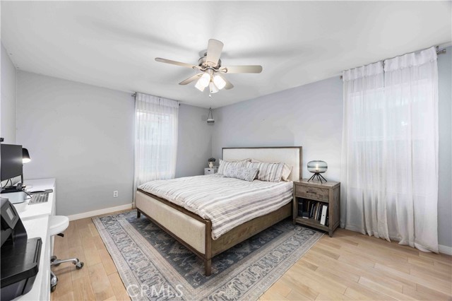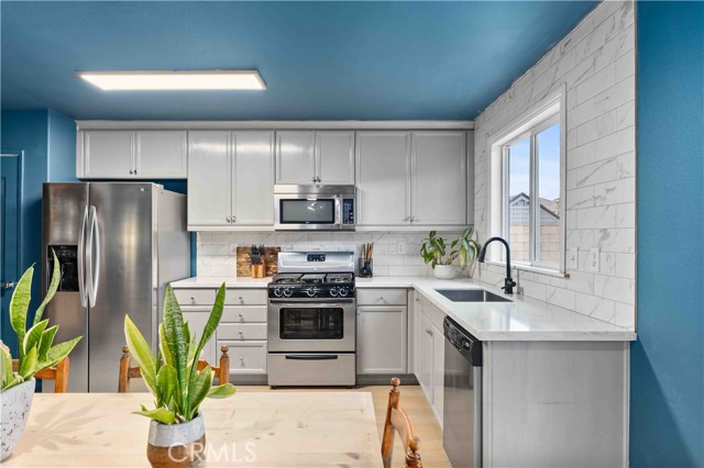 Welcome to this beautifully maintained single-story, split-wing home showcasing professional front and backyard landscaping. Step inside to discover an inviting open layout with high ceilings and updated recessed lighting that create a bright, modern feel throughout.The remodeled kitchen is a true highlight, featuring elegant quartz countertops, a stylish new backsplash, and upgraded flooringperfect for both everyday living and entertaining.The spacious primary suite offers a luxurious retreat with a stunning walk-in closet designed for comfort and convenience. The laundry room provides direct access to the garage for easy functionality.Enjoy seamless indoor-outdoor living with a sliding door from the living room leading to the thoughtfully designed backyard. Complete with a full sprinkler system, the outdoor space includes ample concrete patio areas ideal for outdoor furniture or a jacuzzi, all under a beautifully crafted pergola. There's plenty of room to add a swimming pool.