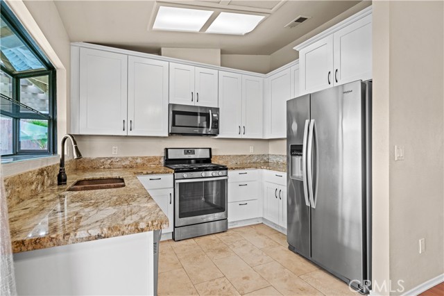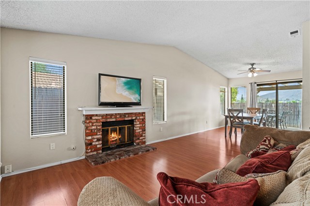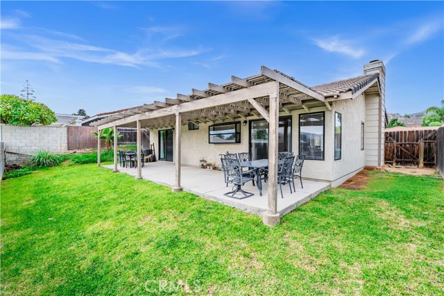 Move-in ready, a single-story SFR under $600K with great curb appeal in a beautiful neighborhood that exemplifies Prive of Ownership. This 2 Bedroom – 2 Bath home offers an open floorplan, custom paint and wood laminated flooring throughout. updated kitchen features white cabinetry, gorgeous granite countertops, stainless steel appliances and IS opened to the dining area. The living room has vaulted ceilings with skylights and a brick fireplace. Both bedrooms are large and have ceiling fans, and the primary bedroom has a sliding door to the backyard, 2 closets, and a private bathroom. Enjoy the fully fenced-in, private backyard with beautiful views of the foothills, and a built-in pergola to relax under. You will have 2-car garage with a full-size driveway and plenty of visitors parking spots in the community. It is conveniently located near schools, shopping and dining, and easy access to the 91 and 15 Freeways. A great, affordable starting home or an excellent home to retire into.