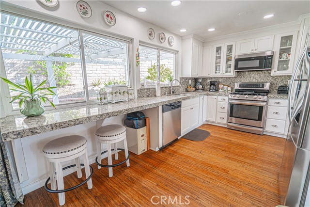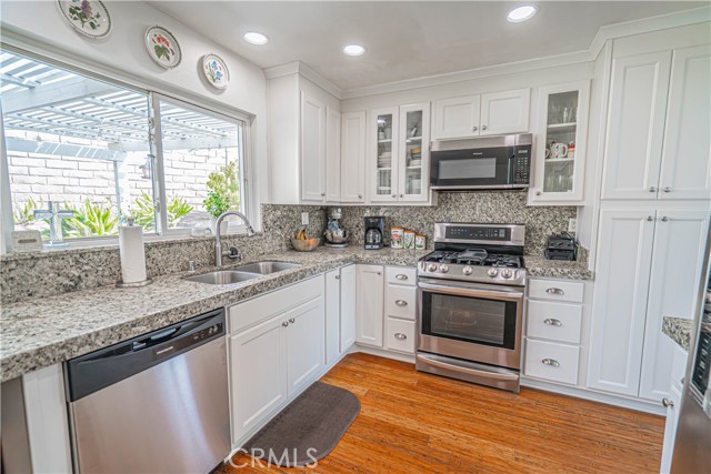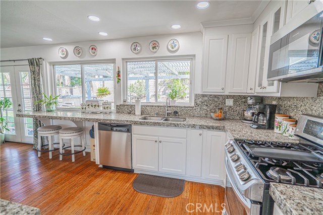 Beautifully updated 3-bedroom home with no rear neighbors and excellent curb appeal! This charming property has been thoughtfully upgraded throughout the years, featuring a newer garage door, newer cool roof shingles and gutters, and cool wall exterior paint for long-lasting durability and efficiency. Inside, you’ll find bamboo flooring, quartz-countertop bathroom remodels, and plantation shutters. The home also boasts a newer HVAC system, whole-house copper re-pipe, and whole-house insulation for added comfort. The kitchen was tastefully upgraded with granite countertops and cabinetry and opens to an inviting living space with vaulted ceilings and abundant natural light from well-placed windows and sliders. The backyard is private, lush, and includes lime, dwarf apple, orange, and peach trees, offering a peaceful retreat and room for your personal touch. No HOA and No Mello-Roos!