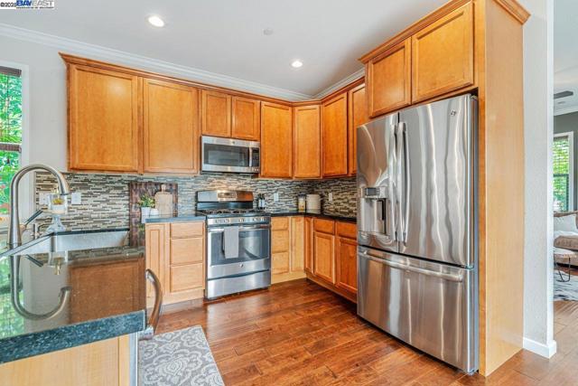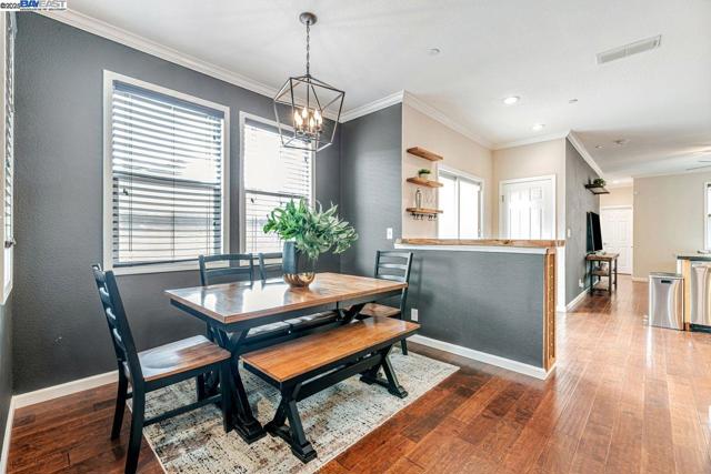 This charming 4 bed, 3 bath home is just under 2,000 square feet, ideally situated near historic downtown Martinez. Built in 2014, this two-story craftsman-style home boasts crown molding, hardwood floors, natural lighting throughout, and modern amenities including an updated kitchen, stainless steel appliances, quartz countertops, a nest central air thermostat system, and a tankless water heater. The first floor features a spacious media room, dining area, custom bar, and modern kitchen with an eat-in bar that seamlessly flows into the family room, creating an ideal space for entertaining. All bedrooms, including the primary suite, and office nook are located on the second story, as well as the spacious laundry room, providing privacy and comfort. Additional highlights include a walk-in pantry near the kitchen, a spacious garage featuring built-in cabinets, work benches, epoxy flooring, and ample storage. The low maintenance yard has built-in shades, a fire pit, a dog run, and ample space for dining alfresco! This home combines contemporary convenience with a prime location, making it an ideal fit for modern living with no HOA dues!
