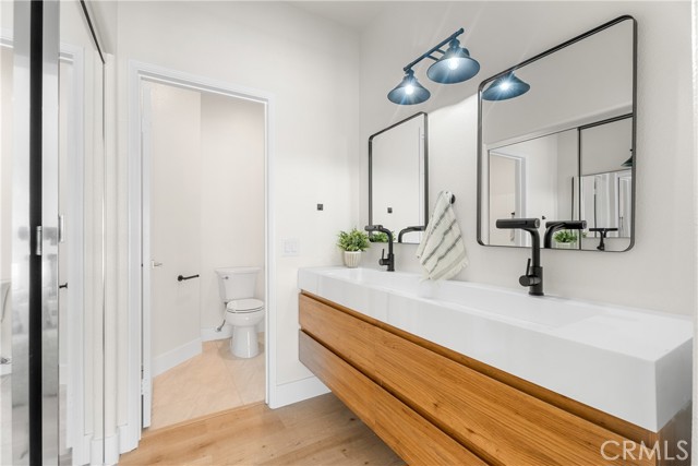 Located in a desirable lakefront community, this beautifully updated townhome features two primary suites and a layout that has been tastefully done throughout. Step inside to discover a seamless blend of contemporary design and everyday functionality, highlighted by an open floor plan that maximizes both space and natural light. The living and dining areas flow effortlessly together, creating an inviting environment perfect for entertaining or relaxing. The chef-inspired kitchen is a true standout, featuring crisp white cabinetry, new quartz countertops, new tile backsplash, new stainless steel appliances, new range, new hood, new sinks, and new fixtures—all thoughtfully selected for a modern, cohesive look. Additional upgrades include new waterproof laminate flooring, new recessed lighting, new outlets, new baseboards, fresh interior paint, smooth scraped ceilings, and double-pane windows. The spacious primary bedroom offers comfort and privacy, while the updated primary bath showcases custom tile flooring, a new vanity, new mirrors, and new mirrored closet doors. Nestled within a quiet, well-maintained neighborhood surrounded by lush trees and greenbelts, this home offers a bright and airy ambiance throughout. Enjoy the convenience of a 2-car garage and a private courtyard—perfect for outdoor dining or peaceful relaxation. The community provides access to exceptional amenities, including a resort-style pool, multiple additional pools, the Rancho Santa Margarita Beach Club, tennis courts, parks, hiking trails, and top-rated schools. Ideally located near abundant shopping, dining, and recreational options, this tastefully upgraded townhome offers both comfort and convenience in a truly sought-after setting.