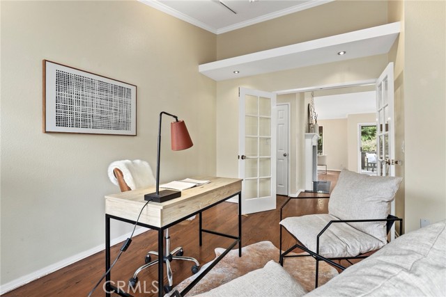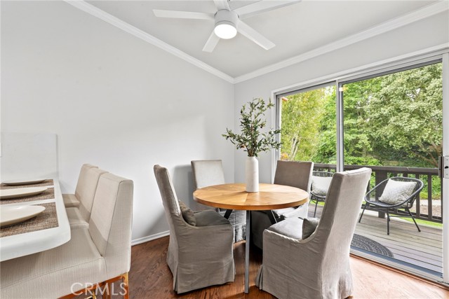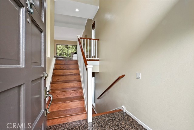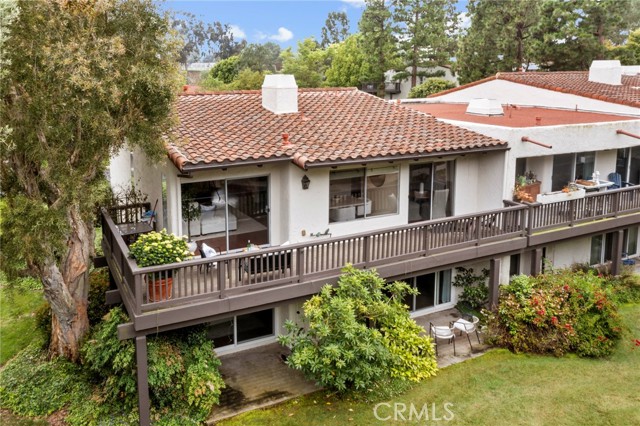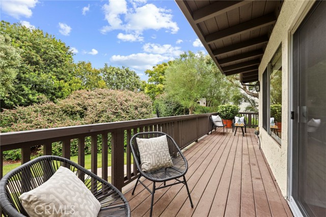 Gorgeous, Private End Unit – Largest Floorplan in The Terraces! Welcome to this beautifully updated end-unit townhome, featuring the largest floorplan in The Terraces and exceptional privacy. Nestled against a lush greenbelt with direct access to peaceful walking paths, this home feels like your own private retreat. Enjoy the oversized wraparound deck overlooking a serene, park-like setting – perfect for morning coffee, outdoor dining, or simply relaxing in your sanctuary. Inside, natural light floods the home, highlighting stunning hardwood floors, vaulted ceilings, and a grand fireplace in the spacious living room. The fully remodeled kitchen (2023) boasts white custom cabinetry, quartz countertops, top-of-the-line appliances, and a sunlit breakfast nook. A formal dining area offers the perfect space for hosting family and friends. On the main level, you'll also find a versatile den or office with French doors leading to a quaint balcony. Just down the hall, a bedroom and updated full bath with a walk-in shower offer flexible options for guests or multigenerational living. Downstairs, the expansive primary suite includes two large walk-in closets, a dressing area, sitting space, and an en-suite bath with double sinks. Sliding glass doors open directly to the greenbelt, extending your living space into the tranquil outdoors. A second bedroom on the lower level also features greenbelt access, mirrored closets, and a remodeled bathroom in the hall. Additional highlights include: a roof replacement (2018), full home re-pipe (2016), new garage door and EV charger (2018), two-car garage with built-in shelving and generous storage space, and a dedicated laundry room with built-in cabinets for even more storage. Prime location within the community – quiet and private with ample guest parking just out front. This home blends comfort, elegance, and function in one of the most desirable settings in The Terraces, a gated community with a 24-hour guard, five swimming pools, tennis court, playground, and clubhouse. TOP RANKED PALOS VERDES SCHOOLS - Soleado Elementary, Ridgecrest Middle School and Palos Verdes Peninsula High School!
