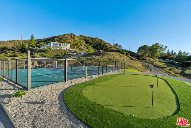 Escape to the pinnacle of tranquility in this exceptional gated Malibu estate, offering complete privacy, prestige, and unobstructed panoramic mountain vistas. This fully renovated 5,066 sq. ft. residential compound features 5 bedrooms, 3 extra unfurnished rooms, 4 bathrooms, and a private office for seamless remote work all curated with ultra-luxurious modern furnishings and brand-new premium appliances.A long private driveway sets the tone for exclusivity as you enter a world of elevated California living. Inside, every detail has been thoughtfully designed from the fully equipped state-of-the-art gym to the open-style theater perfect for entertainment and screenings. Outside, the resort-level amenities include 2 pickleball courts, a 5-hole putting green, a golf cart, an outdoor cabana with guest bathrooms. Expansive hill and mountain views frame every corner of the property. Ideal for Pickleball tournaments, filming, production, or a serene retreat. Location offers both convenience and connectivity absolute privacy while remaining just minutes from beaches and highway access. Nearby lifestyle highlights include Sherman Country Club, Little Beach House Malibu, local horse trails, Foxfield Riding School, Zuma Falls, Newton Canyon Falls, El Matador State Beach, and Zuma Beach. Canyon Ranch Film Location provides access for professional productions, along with the Shalom Institute Camp & Conference Center for family activities. A rare opportunity to experience the pinnacle of Malibu luxury where breathtaking nature, elite amenities, and complete serenity come together in one extraordinary residential haven.