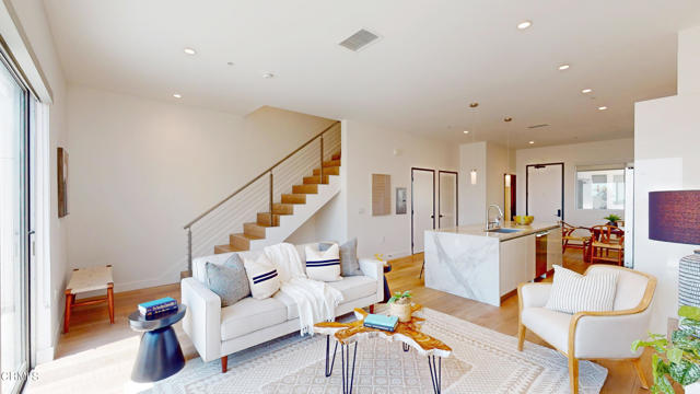 Welcome to this stunning modern residence in a prime location of Los Angeles. This spacious condo has 2 bedrooms, 2.5 bathrooms, and 1,420 square feet of luxurious living space. Upon entering, you are greeted by an abundance of natural light, lovely wood floors and stylish finishes throughout. The open-concept floor plan connects the dining, kitchen, and the living room with a half bathroom on the first floor, creating an ideal space for entertaining or relaxing. The gorgeous kitchen features stainless steel appliances, granite countertops and a large waterfall island. The two spacious bedroom suites are located on the second floor with large walk-in closets. Laundry is located inside a closet. This unit is located on the 3rd floor, with a private balcony offering city views. Residents of this condo community can enjoy the fitness center, an outdoor BBQ area, designated bike storage, and a dedicated EV charging station at your designated parking spot. Mail is secured by a locked mailroom accessible only to residents. There is gated subterranean parking, two tandem parking spots, and parking available for guests. Monthly HOA covers trash, common areas and complex insurance. This home is conveniently located near Chinatown, Downtown LA, Silverlake, and Echo Park. This is urban living at its finest. *Property photos were taken in 2024. The home is unfurnished.*