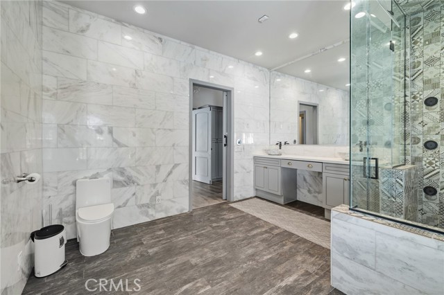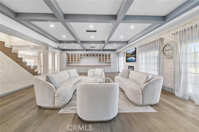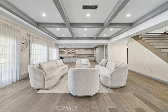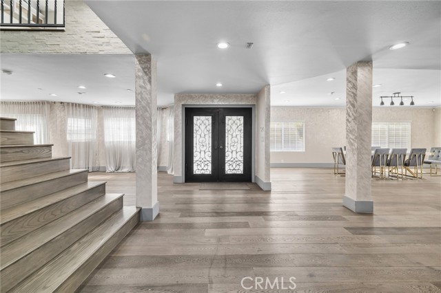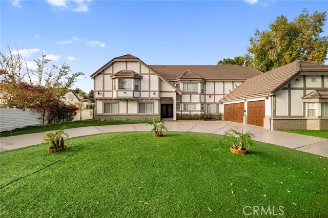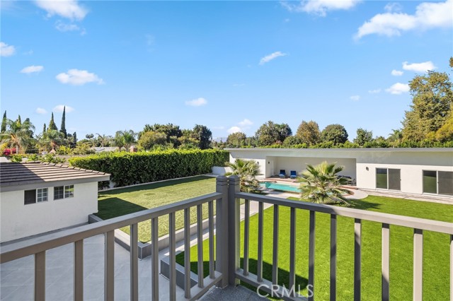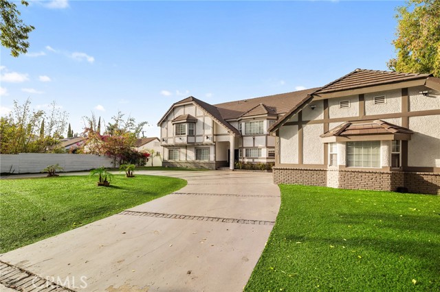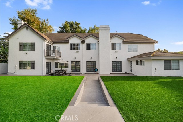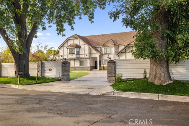 Welcome to this elegantly remodeled estate in the highly desirable community of Sherwood Forest, one of the largest homes in the neighborhood. This 7,007 square foot residence is situated on a rare 21,000 square foot lot. As you enter through the automatic gates, you are greeted by an expansive circular driveway and this modern contemporary Tudor home. The wrought iron double entry glass doors welcome you into a vast open floor plan that includes a grand family room, a sitting foyer, a formal dining room, and a remodeled kitchen. The eye-catching, upgraded oversized kitchen island, complete with custom built-in drawers and a breakfast bar, invites you into a chef's kitchen. All stainless steel appliances and custom cabinetry, accented with brass hardware, enhance your cooking experience. This bright open space is perfect for entertaining and welcoming families. The main floor's west wing features a spacious and desirable first-floor bedroom suite with a walk-in closet and private bath, along with one of two laundry areas. The east wing boasts a beautifully remodeled powder room and guest quarters, complete with a bedroom, a private bath, and an additional room with custom built-in cabinets, ideal for an in-home office or gym. The luxurious double-wide staircase leads you to a total of five upper bedrooms. Two spacious bedrooms are located in the upper east wing, accompanied by a remodeled bathroom in the common area. Two additional bedrooms with a Jack and Jill bathroom and vaulted ceilings are situated in the upper middle area, leaving the entire upper west wing dedicated to the primary suite. The primary suite features high vaulted ceilings, perfect for t for the elegant chandelier that greets you at the double door entrance. Custom built-ins, a retreat area with a fireplace, and a balcony create a cozy atmosphere within this expansive wing. As you enter the barn door-enclosed bathroom, relax in the glass-enclosed mosaic-tiled walk-in shower, complete with multiple shower heads and jets. Alternatively, find sanctuary in the Roman bathtub, perfect for soaking. Pool, large backyard, detached ADU perfect for gym or in laws.