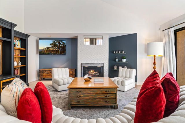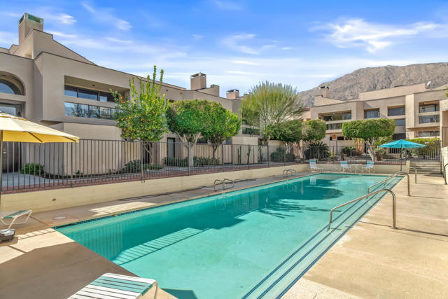 Discover refined living at 477 Village Square East, a spacious contemporary 3-bedroom, 3-bathroom condo nestled in the exclusive gated Village Racquet Club. Spanning 1,923 square feet, this home offers a blend of elegance and modern conveniences. Sited on an interior corner lot, this residence provides a peaceful retreat away from traffic, while showcasing stunning mountain views and steps away from community amenities. The living room features a wet bar, cozy fireplace, and wonderful private balcony creating an ideal spot for enjoying morning coffee or relaxing at sunset. The kitchen, updated with sleek stainless appliances, cabinetry, and a newer refrigerator, caters to both the novice cook and the culinary enthusiast. A very private second patio is off the kitchen. The primary suite is a sanctuary with a recently renovated double-vanity bathroom, walk-in closet, and versatile sitting room/office with stunning views. A convenient laundry chute leads from the primary closet to the spacious two-car garage with laundry area and seven built-in, lockable closets, two lined with cedar. Two additional bedrooms and baths provide plenty of room for guests. Enjoy the community's recently updated pool and hot tub or take advantage of the well-equipped gym and tennis courts. Embrace the Palm Springs lifestyle in this home that combines modern elegance with resort-style amenities, offering both a peaceful retreat and a vibrant hub for activity in a location that combines functionality with flair.