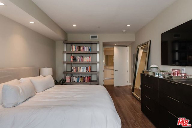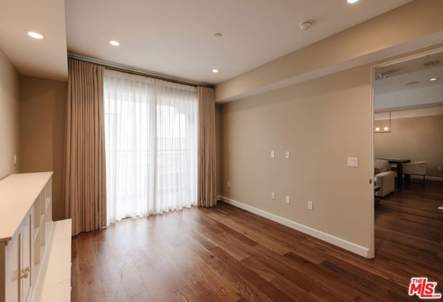 Experience elevated Brentwood living in this refined residence within a full-service luxury building. The Cosmopolitan BW offers 24/7 concierge and a full-service front desk, and is home to an elegant 2-bed, 2.5-bath residence with a spacious open layout, intentional accent lighting, wide plank oak wood floors, and expansive windows. The generous living space extends to a small private balcony and a sizable dining area that can comfortably seat up to eight. The gourmet kitchen features top-of-the-line stainless-steel Fisher & Paykel and Bosch appliances, a Wolf range, sleek white cabinetry, a large island with bar seating, and ample counter space. An in-unit washer/dryer adds everyday convenience. Both bedrooms include ensuite baths, while the primary suite elevates comfort with a soaking tub, dual vanities, and a large walk-in closet. Residents enjoy premium amenities including a state-of-the-art fitness center, heated pool, outdoor lounge with fire pit, and a tranquil meditation garden.Just moments from top-rated schools, acclaimed restaurants, boutique shopping, and the iconic Brentwood Country Mart, this home offers a sophisticated and effortless Brentwood lifestyle.