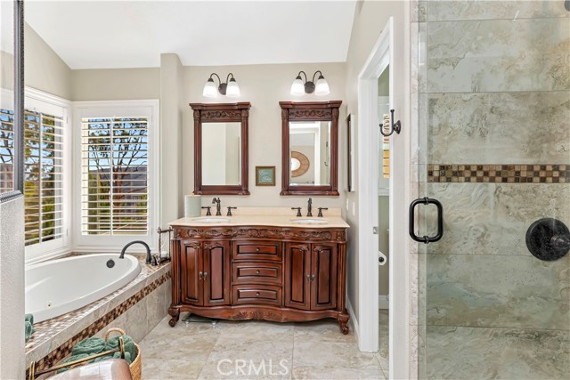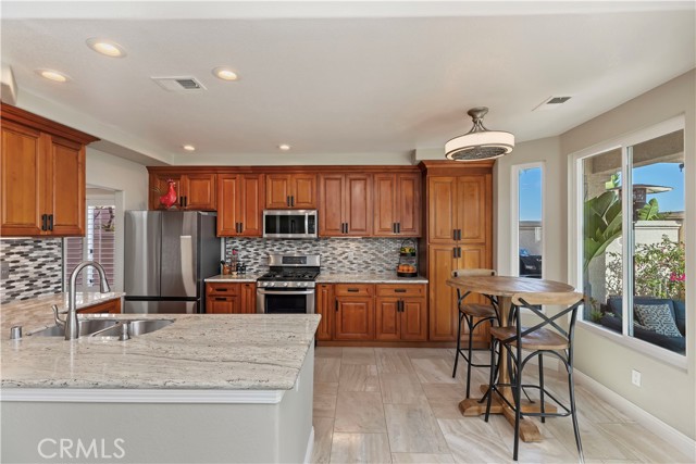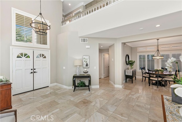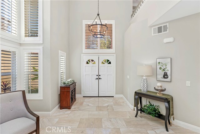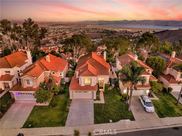 >>> This home is TRULY special and something you MUST see for yourself to believe. <<< This beautifully upgraded Lake Hills residence gives you the feel of a Pottery Barn showroom and showcases some of the best panoramic views of Lake Mathews that Lake Hills has to offer. With 4 bedrooms, 2.5 bathrooms, and 2,089 SqFt of refined living space, this home blends comfort and sophistication in every detail. Step inside to a dramatic entry where sky-high ceilings, crown moulding, and wide-plank baseboards frame textured travertine flooring and soft modern grey walls bathed in natural light. The kitchen is a true showpiece, featuring stainless steel LG Suite appliances, granite countertops, soft-close cabinetry, and a stylish backsplash all opening to the family room anchored by a stacked-stone fireplace and expansive lake views that will WOW! even the most discerning critics. Upstairs, the primary suite offers a peaceful retreat with its own breathtaking view of the lake -- imagine waking up to that every morning!! -- a walk-in shower, and a jacuzzi tub perfectly positioned against the window to “soaking those views”. Additional highlights include new carpet with upgraded padding, plantation shutters, Milgard double-pane windows, a QuietCool whole house fan, recessed lighting throughout, and a roof tune-up that was conducted in 2023. The backyard invites relaxation with an in-ground jacuzzi accented by color LED lighting, while stucco privacy walls ensure a serene outdoor escape. This Lake Hills home captures the perfect balance of elegance, comfort, and California living—with views you’ll never tire of. Nestled on 750 acres, Lake Hills provides a serene mountaintop retreat near Riverside’s cultural and educational offerings as well as shopping. Residents enjoy the vast open spaces, top-tier Lake Hills Elementary, parks, playgrounds, picnic areas, and a basketball half-court. The HOA also includes maintenance of the extensive common grounds as well as an evening security patrol. Perfect for commuters, with easy access to the 91 Freeway and Metrolink.