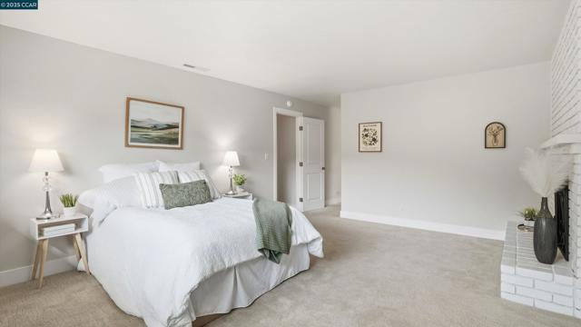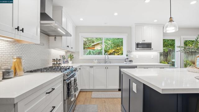 Welcome to this stunning home in the highly desirable Virginia Hills neighborhood, perfectly positioned on the Pleasant Hill border and served by popular Pleasant Hill schools. Designed for both comfort and style, this spacious residence blends modern updates with warm, inviting spaces ideal for everyday living and entertaining. The fully remodeled kitchen is a showstopper, featuring a large quartz island with seating, soft-close cabinetry, subway tile backsplash, stainless steel appliances, and an open-concept layout that flows seamlessly into the family room and out to the backyard. Enjoy an outdoor oasis with a welcoming patio, lush lawn, and beautifully maintained garden areas with colorful flowerbeds—perfect for dining, play, or relaxation. Inside, the spacious living room and formal dining area feature LVP floors that add sophistication. Upstairs, the primary suite offers a peaceful retreat with its own fireplace, hill views, and serene ambiance. Four additional bedrooms and an updated bathroom provide ample space for family, guests, or a home office, plus access to a balcony. This ideal location is moments from two neighborhood parks, Briones Regional Park, shopping, dining, and convenient access to Hwy 680, Hwy 4, Hwy 24, BART, and Amtrak.