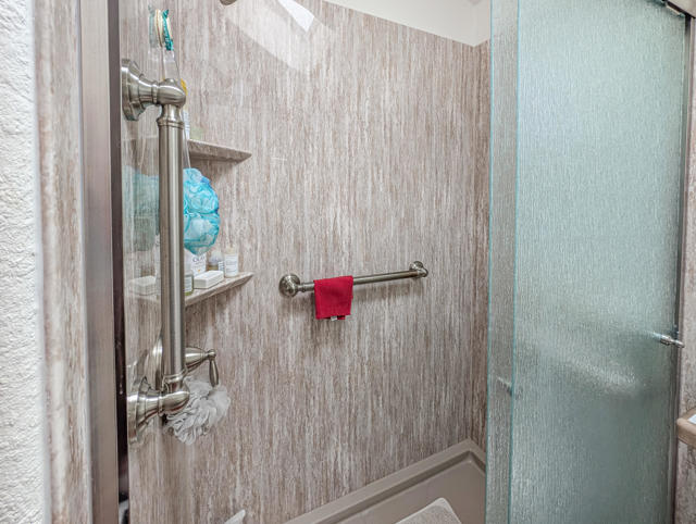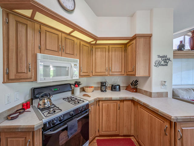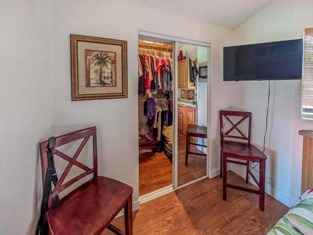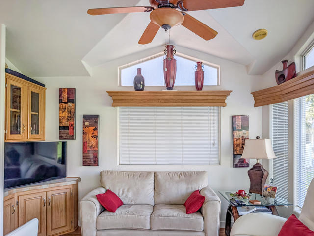 Caliente Springs Resort is an exclusive, gated community for ages 55 and up. This spotless 2004 Cavco Park Model offers around 550 sq. ft. of living space with one bedroom and one bathroom. It sits on the lush 8th hole of the golf course, surrounded by beautiful local scenery, mountains, and ponds--all of which you can enjoy from your fully covered deck, perfect for relaxing in peace. Updates include new flooring, a new deck, an upgraded bathroom with a tiled walk-in shower and an energy-efficient toilet, a walk-in closet, paved parking, landscape irrigation, and more. A golf cart is also included for convenient travel around the park. Community amenities feature 8 pickleball courts, tennis courts, laundry facilities, a library, fitness center, a 9-hole golf course, and mineral-fed hot springs pool and spas. In addition to the impressive features of the home and resort, residents enjoy an active social calendar with group activities, classes, and gatherings that foster a warm sense of community. The resort's gated security offers peace of mind, while its prime location provides convenient access to shopping, dining, and local attractions, making everyday living both comfortable and enjoyable. Whether you're seeking a tranquil retreat or an engaging lifestyle, Caliente Springs Resort combines the best of both worlds for those looking to embrace the next chapter in a vibrant 55+ setting. Lot is not owned; space rent is $950 per month.