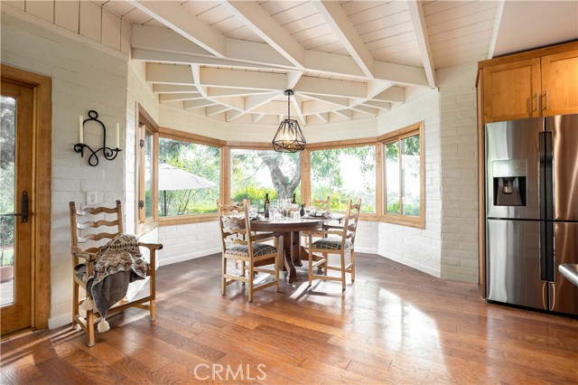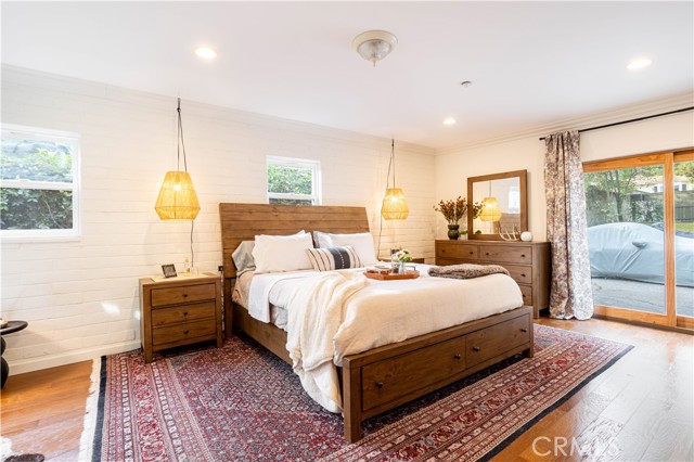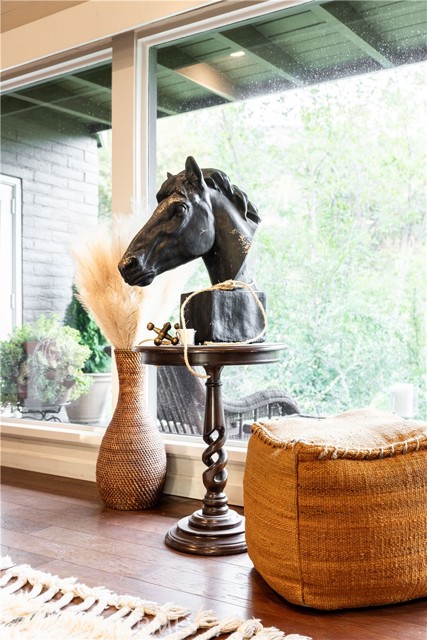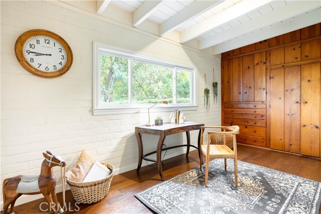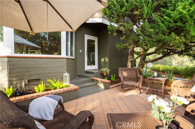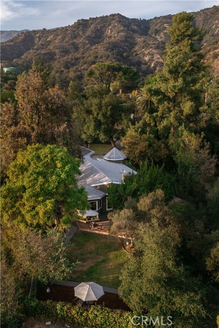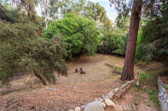 Calling all nature enthusiasts! This exceptional single-level home, set on a sprawling 34,609 sq. ft. lot in highly desirable North Monrovia, offers a rare combination of privacy, space, and modern efficiency. Sited behind a private fence and beautifully shaded by a mature oak tree, the property feels like a secluded retreat. The thoughtful, open floor plan is designed for both comfortable daily living and entertaining. Inside, you'll find a formal living room and a spacious Great Room featuring a cozy fireplace, designated dining area, and walls of windows that perfectly frame the views of the lush, expansive grounds. The kitchen is appointed with ample Shaker-style cabinetry, granite countertops, and built-in appliances. The primary retreat is thoughtfully tucked away for maximum privacy, boasting a walk-in closet and an adjoining bathroom with a dual-sink vanity. Two additional bedrooms and a secondary bathroom, also featuring a dual-sink vanity and a separate tub and shower. The outdoor space is a true highlight, offering several patio areas ideal for entertaining, as well as a large, flat pad accessible by a winding path—a blank slate perfect for installing a pool or realizing a variety of other outdoor visions.Additional amenities include wood flooring, central air and heat, a dedicated utility room, and recent interior and exterior painting. The home is an all-electric residence powered by an owned solar system, offering significant energy efficiency. Parking is plentiful with a detached 2-car garage featuring upper storage, plus several uncovered spaces. Experience the best of North Monrovia living in this unique, private setting.