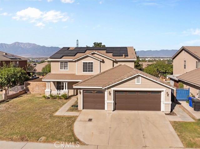 Now available! This two-story home is located in Country Club Estates in Fontana on a quiet cul-de-sac. The first floor features a living room, a formal dining room, and a family room. The remodeled kitchen includes granite countertops, stone-accented interior walls, a walk-in pantry, and a breakfast nook. A downstairs bedroom with access to the hall bath offers an ideal space for guests or extended family. The second floor includes a bonus/game room, a primary bedroom with an en suite bathroom and walk-in closet, three additional bedrooms, and a hall bath. Interior improvements include wood-plank composite flooring, crown molding, ceiling fans, recessed lighting, and remodeled bathrooms. Exterior highlights include a covered front porch, pool, covered patio with deck, and exterior lighting. Located off Sierra Ave., this home offers excellent access to the 10 and 60 freeways, major employment hubs, Ontario International Airport, and Kaiser Permanente Fontana Medical Center. No HOA Dues! See for yourself!