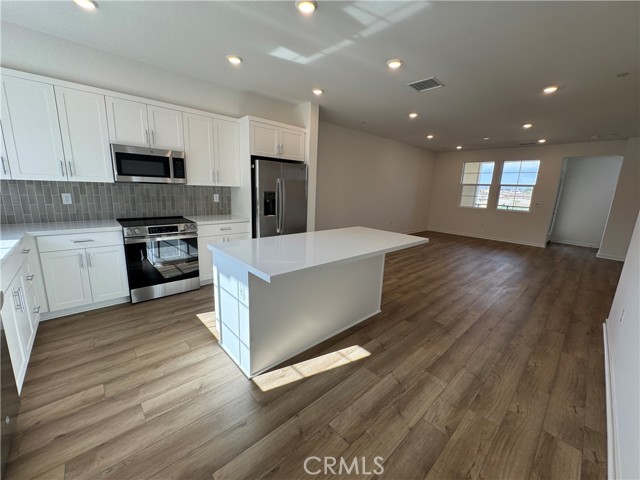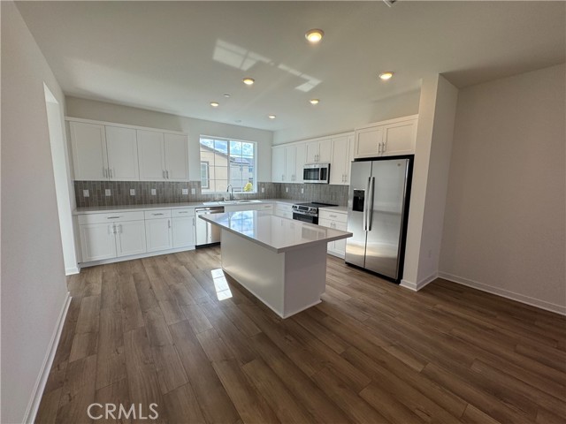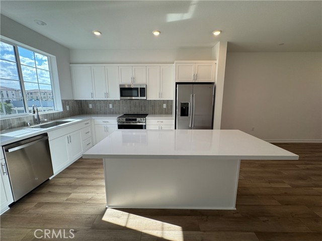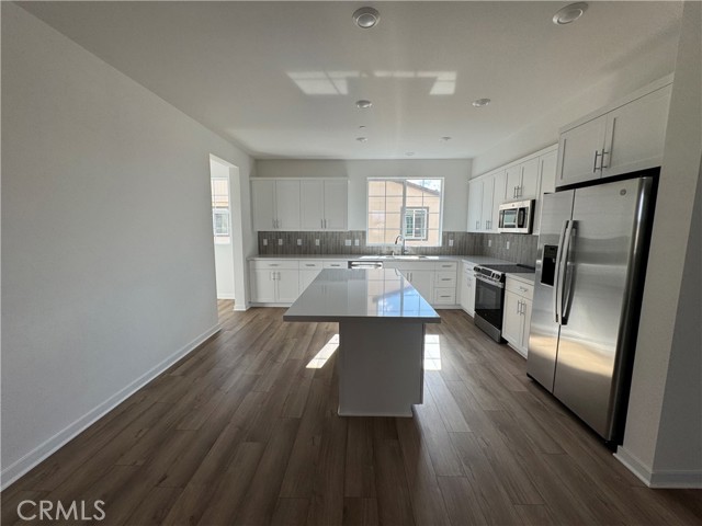Brand-new 4-bedroom, 3.5-bath townhome in the Beacon at Eastvale Square community! This newly built 3-story Plan 2 offers approx. 1,977 sq. ft. with a flexible layout, including a first-floor bedroom suite ideal for guests, in-laws, or a home office. The main living level features an open-concept great room, dining area, and upgraded kitchen with a large island, quartz countertops, stainless steel appliance package, and refrigerator included, plus a private balcony for outdoor relaxation. Upstairs, the primary suite includes a walk-in closet, dual-sink vanity, and oversized shower, along with two secondary bedrooms, full bath, and an upstairs laundry area with washer and dryer included. Additional highlights include solar, recessed lighting, energy-efficient windows, and an attached 2-car side-by-side garage. Beacon is part of the master-planned Eastvale Square community with planned amenities including a resort-style pool, spa, fitness room, clubhouse, BBQ/picnic areas, parks, and paseos (under development, with completion anticipated around next year). Close to Sprouts, Costco, shops, dining, and minutes from the 15/60/71/91 freeways for easy regional access. A rare brand-new lease opportunity with a full appliance package and modern finishes throughout.