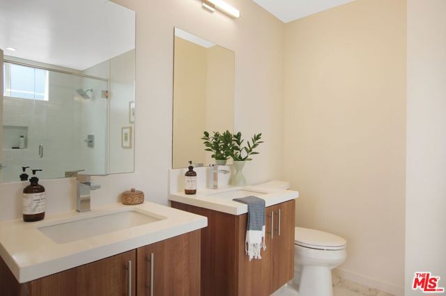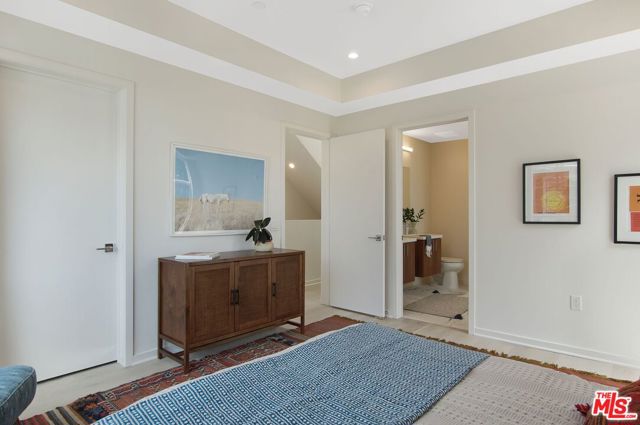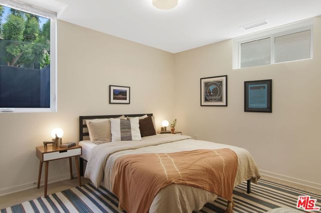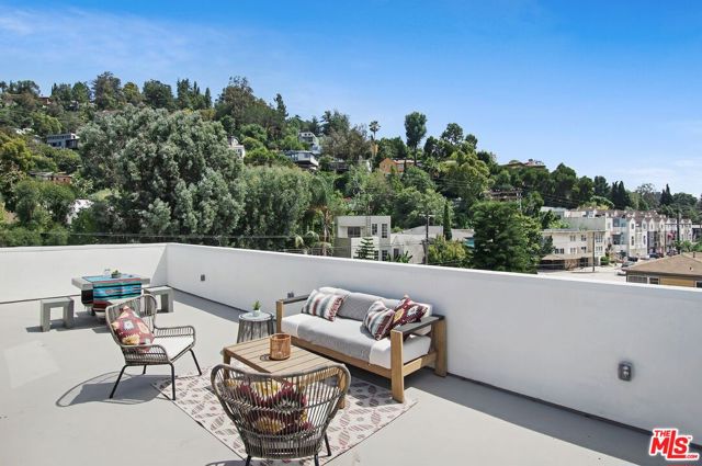 Modern Silver Lake single-family home with a roof deck & private back yard! Enter into the foyer or from the two-car garage with direct access. 1st floor offers a bedroom with en suite bath. Head up to the dramatic living room with oak floors, open to the dining room & kitchen. The gourmet kitchen has quartz counters & stainless Bosch appliances. A full wall accordion door opens off of the dining area to enjoy true indoor/outdoor living. The 3rd floor offers a primary bedroom suite with a huge walk-in closet & en-suite bath with double sinks & an oversized shower. There is another bedroom on the 3rd floor with an en-suite bath. The spectacular rooftop deck with unobstructed views westward - perfect for a glass of wine at sunset! Central A/C with a thermostat on each floor as well as a stackable laundry next to the primary. Access to transportation & downtown LA. Stone's throw to Casita del Campo, Hyperion Public Bar, Lyric Theater, Hype Yoga Studio & Gelsons. Top-rated Franklin Elementary and Thomas King Middle!