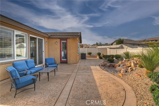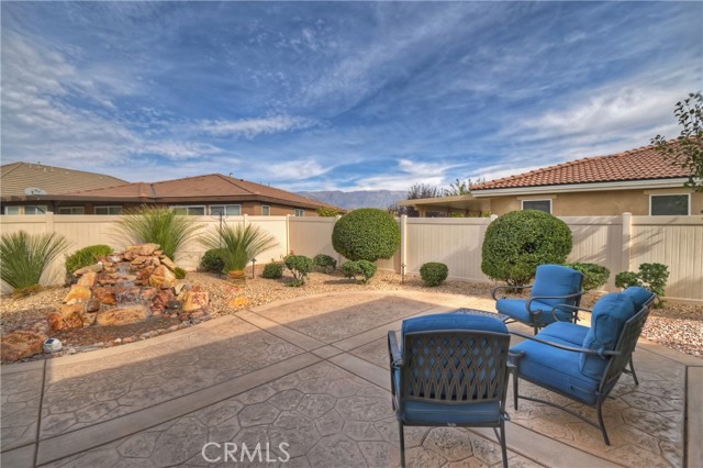 Some homes simply feel different the moment you step inside--calmer, warmer, more welcoming. This is one of those homes. Tucked within the beautifully maintained grounds of Four Seasons Beaumont, this pristine "Sanctuary" model has been cared for with intention. Every room tells a story of comfort and ease, from the soft glow filtering through the plantation shutters to peaceful flow of open living space. The kitchen features crisp white cabinetry with special pulls & Butlers pantry quietly connects gatherings and quiet mornings, ready for celebrations or simple cups of coffee. The backyard has a beautiful serine water feature and a stamped concrete patio to enjoy the summer and even winter evenings. With 2 bedrooms, 2 baths and a den/office, this home offers spaces that adapt to your life: a place to work, create, unwind, or welcome loved ones. Life in Four Seasons Community exists with beautiful walking paths, three shimmering pools (one being an indoor pool), a bistro restaurant, serving lunch/breakfast and dinner, three club houses, beauty salon, massage parlor, movie theatre, billiards, fitness center with state-of-the-art equipment BBQ & picnic area, tennis courts, pickle ball/paddle tennis, putting green, a dog park and so many wonderful activities and clubs to meet new friends and be as active as you choose. Here, home is more than a structure, it is a lifestyle, a community and a feeling. You will want to come visit this home and community, you may never want to leave.