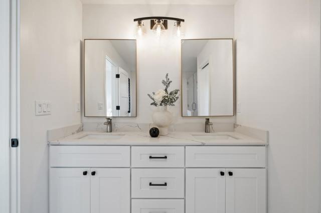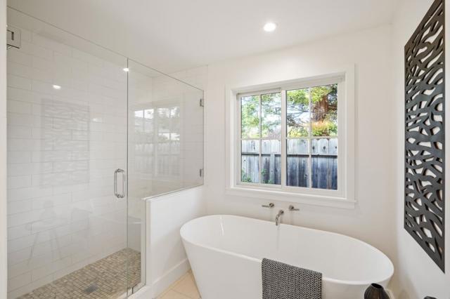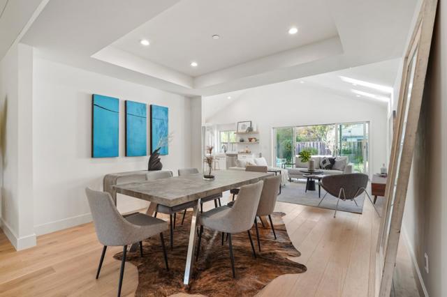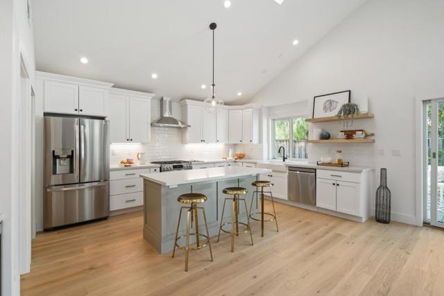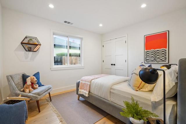 This modern farmhouse-style home blends luxury, design, and comfort. Located in a quiet, tree-lined, and safe neighborhood, offering a peaceful retreat. The charming, park-like backyard is beautifully landscaped with drought-resistant artificial grass, perfect for outdoor entertaining and for kids! The location is ideal, with easy access to fabulous parks, restaurants, tech companies, and just minutes from downtown Redwood City. The gourmet chef's kitchen is a true highlight, featuring quartz countertops, stainless steel appliances, and a custom-built pantry with a coffee bar. Expansive double slider glass doors open directly to the resort-like backyard, creating a seamless indoor-outdoor living experience. High vaulted ceilings and natural light fill the main living spaces, connecting the kitchen to a spacious family and living room. The expansive master suite boasts a large master bath, barn door closets, and designer finishes. Enjoy a truly flexible al fresco lifestyle with the new mechanical pergola patio covering, which retracts to let in the sun or provides shade at the touch of a button. Additional modern upgrades include new LED lighting, a tankless water heater, central A/C, a newly installed whole-house water softener, and upgraded fixtures throughout.