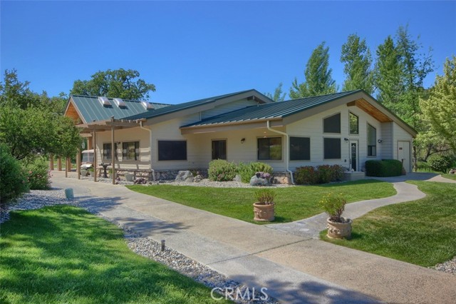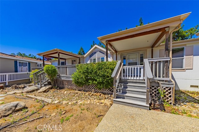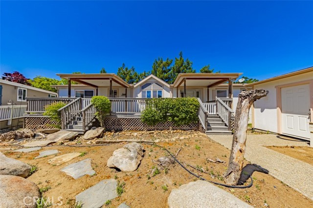 Beautifully positioned manufactured home in the Oak Creek Mobile Home Park, with the home set back off the road for added privacy, a detached garage and a stunning double front porch to look out on your front yard to garden, plant your flowers and enjoy sitting and relaxing! Another deck in the back is perfectly situated under the Cedar trees to enjoy the shade in the summer. The open space of this home makes for a very calming atmosphere having 3 bedrooms, 2 baths, plus an office/den for your workspace, hobbies, crafts or whatever you desire. The spacious kitchen has a convenient center island, counter and cabinet space galore and is ready to entertain guests at the breakfast bar while you cook or bake with ease. The guest bedrooms have sliding glass doors to the back deck and the laundry room also has a back door and utility sink. The primary bedroom offers a walk-in closet and huge adjoining bathroom with 2 separate vanities, jetted soaking tub and separate shower. The 2 car detached garage is a rare find in Oak Creek Park and is great for extra storage space, garden tools, a workshop area and to park your vehicles! Be sure to check out all of the amenities in Oak Creek Park including a beautiful Clubhouse with card room, library, small fitness center and small kitchen for events and a wonderful in-ground Pool and Spa, fenced dog area and extra parking areas. Located in the heart of Coarsegold for that quick shopping, restaurants and medical. The location is great just 10 minutes to Oakhurst or Chukchansi Casino, 30 minutes to Bass Lake and 45 minutes to Fresno or Yosemite National Park. Oak Creek is a 55+ community in Coarsegold. Come and take a look at this wonderful manufactured home in the beautiful foothills of Eastern Madera County. Home is sold As-Is.