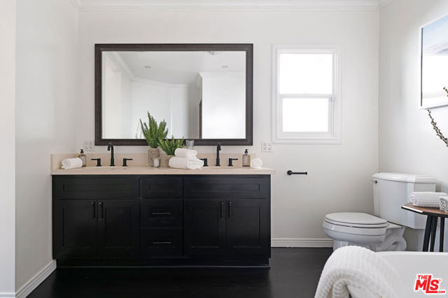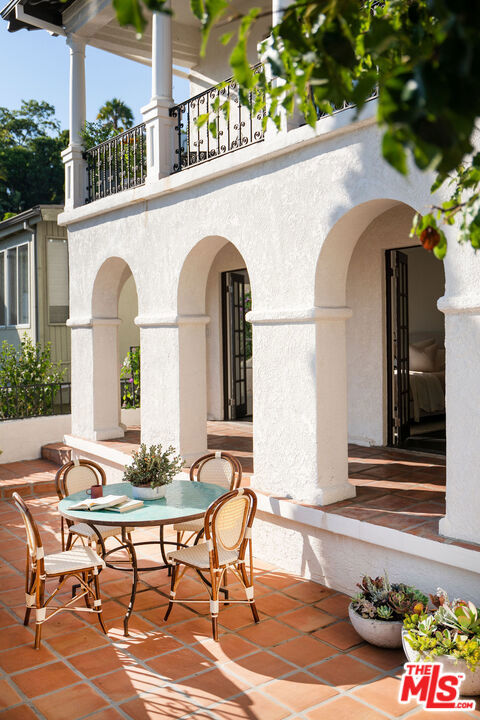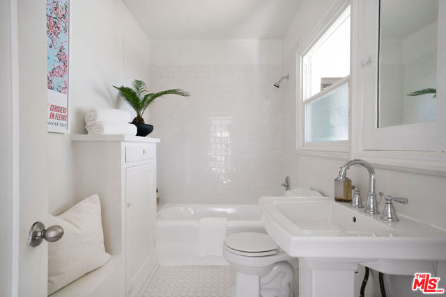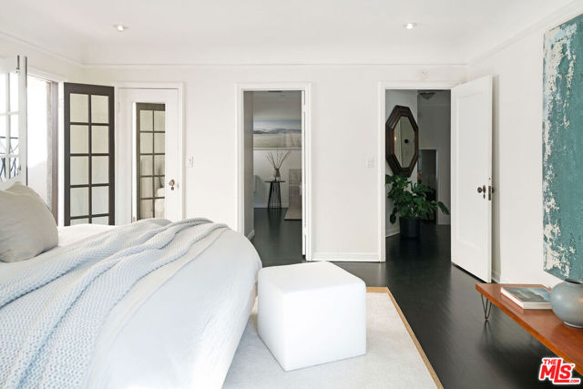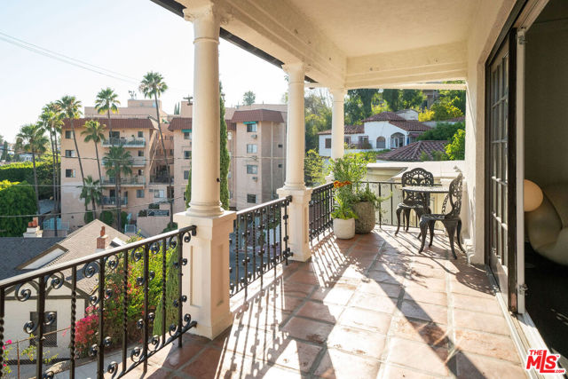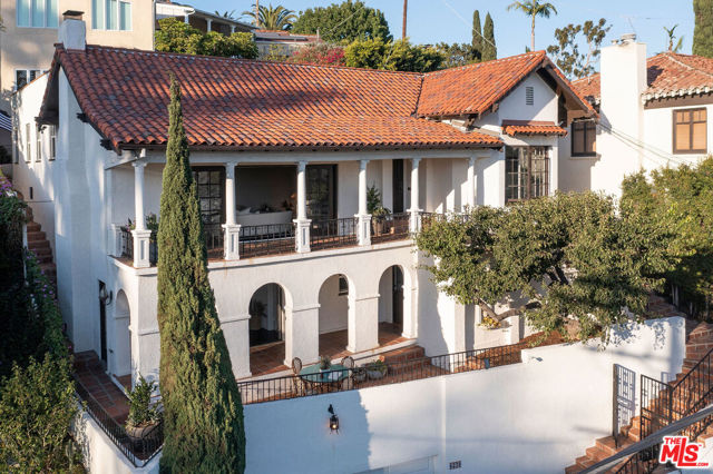 This classic 1926 Spanish style home offers a 3 bed, 3 bath main house with an attached, but private guest quarters below. Perfect for visitors or working from home as this 1 bed, 1 bath has a completely separate entrance. As you enter the gated property, you will note the beautiful terra-cotta tile, the flowering pear tree, and the two front portico terraces with their iconic archways, perfect for dining or enjoying the outdoors without much maintenance. With views of the city, the mountains, and beyond, this Hollywood Hills pied-a-terre is incredibly chic and the updates made perfectly marry the memorable with the modern. Meticulously maintained, this home is appealing to those who have an appreciation for historic architecture as you have restored hardwood floors, decorative mantles, coved ceilings, crown molding, and original casement windows. Perhaps the most impressive though, is the primary bedroom and bathroom with new soaking tub and porcelain shower, plus original casement doors that open up to the back veranda where you can relax and once again take in the cityscape. When you're at Holly Mont you feel as though you've been transported somewhere truly magical. It is both peaceful and private, timeless and elegant. Centrally located with easy access to the rest of the city and the valley, but conveniently located near Beachwood and Franklin Village. A lease greater than one year is preferred.
