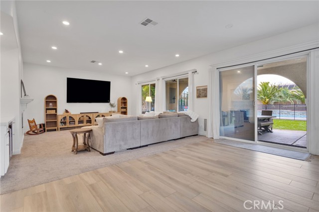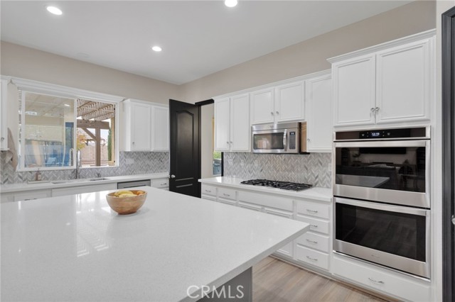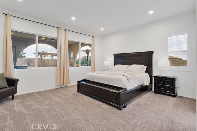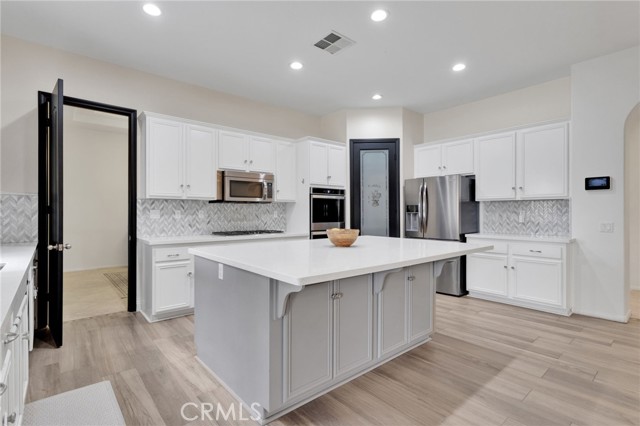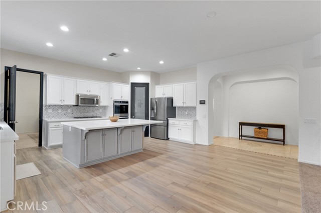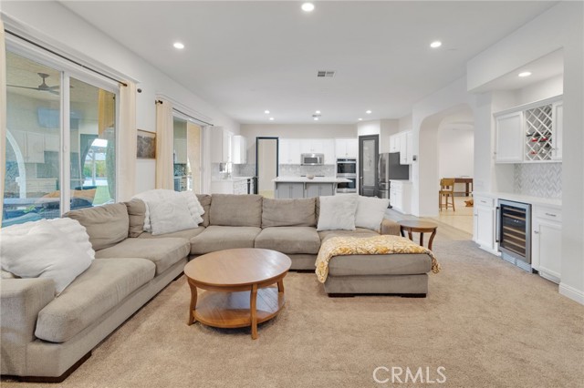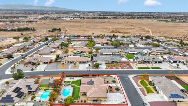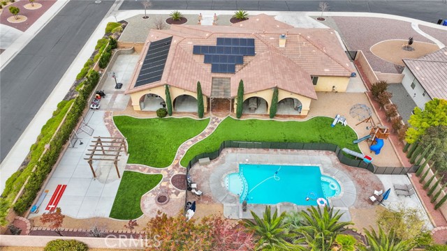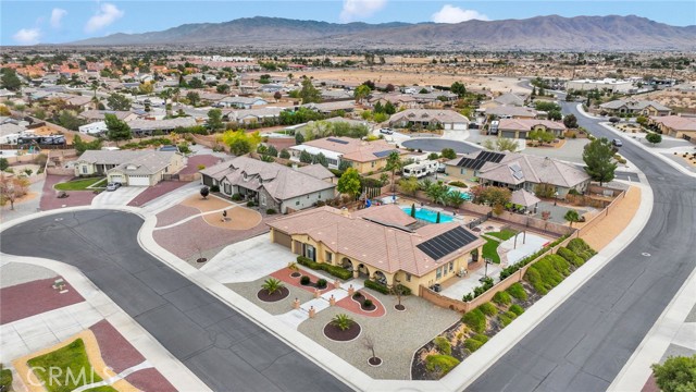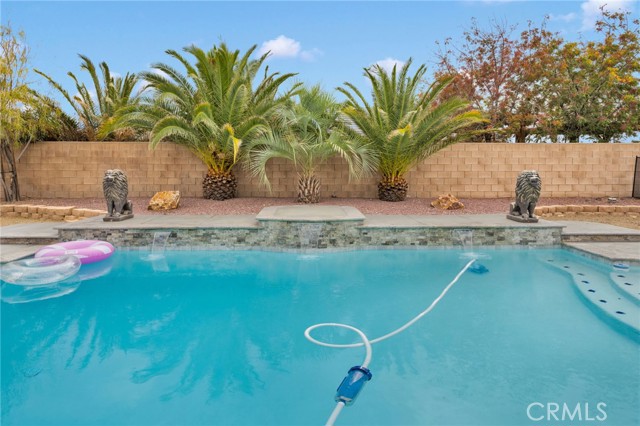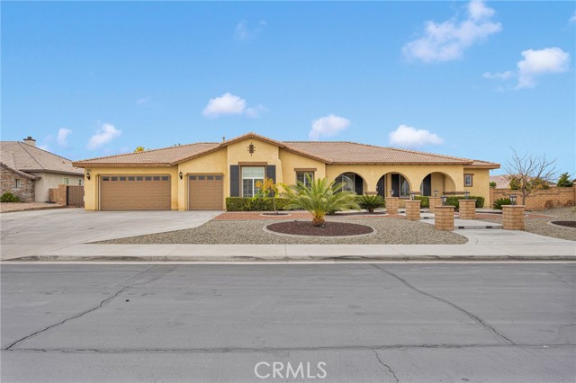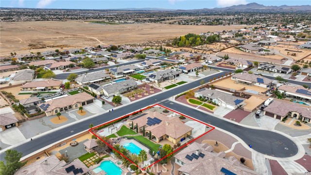Welcome to Fuji Court, a retreat-like home in the gated Veranda community. With 3,184 sq ft of living space, 4 bedrooms, an office/bonus room, and 2.5 baths this home is designed for refined comfort and easy living. Beautiful curb appeal and landscape lighting highlights the architecture & mature plantings. Inside, tall ceilings and large windows bring natural light into every room. The layout includes a formal living room, formal dining, and a spacious family room with fireplace, built-in wine bar, and expansive views that extend living space into the stunning backyard. The remodeled chef’s kitchen features white cabinetry, quartz countertops, a large island, Carrara marble backsplash, double smart ovens, walk-in pantry, coffee bar, and included refrigerator. The kitchen flows seamlessly to the family room where cooking, conversation and everyday living come together. The owner's suite offers a luxurious place to unwind and a spacious ensuite bath with dual sinks, makeup vanity, jetted soaking tub, and a large walk-in closet with built-in organization. Three additional generously sized bedrooms plus a bonus room that works well as a 5th bedroom, media room or home office. Set on nearly a half-acre corner lot, the backyard is designed for relaxation & recreation. Gated RV parking and extensive concrete work lead to a backyard built for year-round enjoyment. The large under-truss patio offers recessed lighting, ceiling fans and TV mounts. A swimming pool with a sunning ledge, raised waterfalls, tanning deck, & safety fencing creates a private resort feel. A wood gazebo, firepit and included playground equipment add flexible spaces for gathering & outdoor play. Synthetic turf, stonework and concrete finishes are easy care for more time to enjoy the setting. The finished 4-car garage includes epoxy flooring. Practical features include assumable SOLAR, Solar pool heater, 2 HVAC units, indoor laundry and a multi-camera security system. Thoughtfully updated, Fuji Court offers refined comfortable family living in The Verandas, one of Apple Valley’s most sought-after gated neighborhoods that is close to shopping, schools and dining. List Price Includes: Kitchen & garage refrigerator, wine refrigerator, washer, dryer, pool fencing, patio furniture.