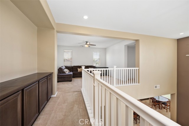Discover the perfect blend of modern comfort and family functionality at Morningstar Ranch neighborhood—a spacious 4-bedroom, 4-bathroom haven spanning 2,946 square feet, tailored for families seeking a turnkey home with room to grow, work, and unwind. Imagine starting your day in the sun-drenched, open-concept living area, where a soaring 19-foot ceiling is complemented by a massive 72-inch ceiling fan for optimal airflow and energy efficiency, keeping your household cool and comfortable year-round. The gourmet kitchen features rich dark wood cabinetry, gleaming granite countertops, and a stylish glass tile backsplash, flowing seamlessly into the elegant dining room with real wood flooring—ideal for hosting family dinners. Downstairs, the 14x18 primary suite offers a private retreat with easy access. An additional flex room downstairs serves as a fifth bedroom or dedicated home office, featuring a shiplap accent wall for rustic sophistication. Upstairs provides spacious bedrooms for kids and guests, plus a loft for entertainment. For active families, the connected third-car garage has been masterfully converted into a fully equipped home gym: heavy bag, folding weight rack, over 400 lbs of weights, weight storage, bench, stall mats, and TV—all while retaining space to park a vehicle. Skip the gym commute and enjoy convenient at-home workouts that fit your schedule, promoting health and work-life balance without sacrificing storage or parking. Assumable loan solar panels power the home, delivering significant savings on electricity bills while harnessing clean energy and reducing your carbon footprint—a smart, eco-friendly investment. Step outside to your low-maintenance oasis: lush artificial turf in both front and rear yards ensures a perpetually green lawn without watering or mowing, saving time and costs for family adventures. The expansive 240-square-foot Trex front deck, framed by a majestic Canary Palm and a 23-foot decorative brick flower bed, creates inviting curb appeal and a serene spot for morning coffee or evening gatherings. The backyard offers a private escape for barbecues or playtime. Nestled in the family-friendly Temecula Valley Unified School District and steps from Brookfield Park for weekend outings and events, this home is just 12 minutes from renowned Temecula wine country. Indulge in over 40 vineyards and tasting rooms, lively festivals, or farm-to-table dining—perfect for romantic date nights or family excursions.