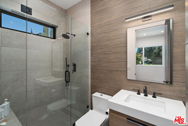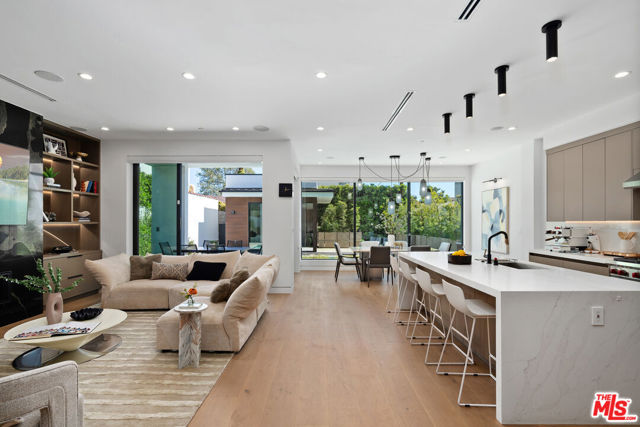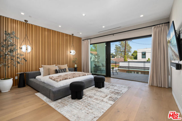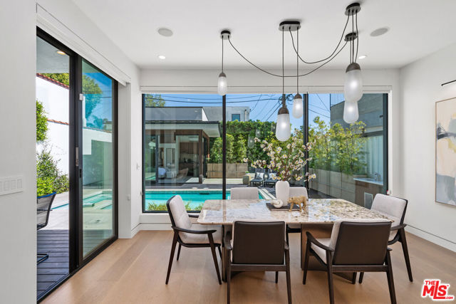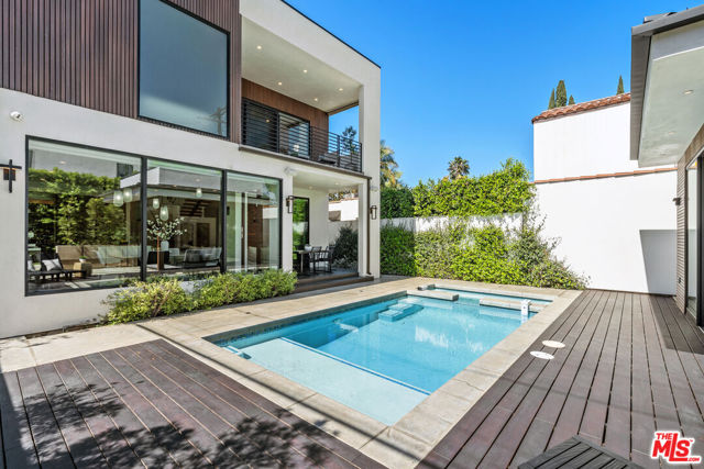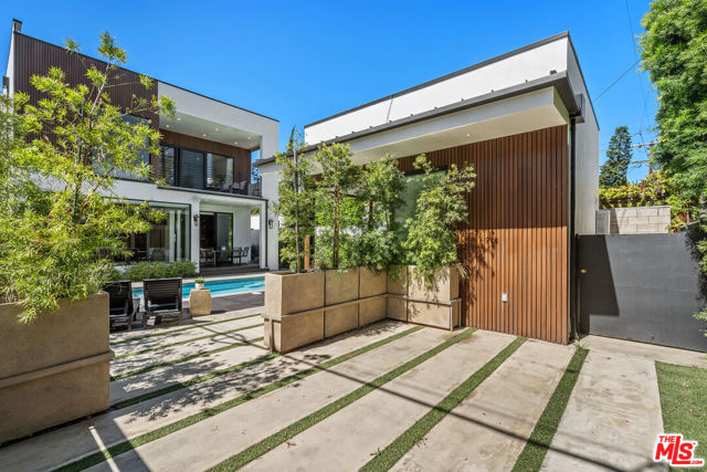 Discover a modern retreat tucked into one of Los Angeles' most energetic and highly walkable pockets. From the moment you arrive, the mature greenery framing the property hints at the calm, modern sanctuary that awaits inside. This five-bedroom residence blends clean design with everyday comfort, offering ensuite bathrooms in every bedroom for effortless privacy and convenience. The primary suite serves as a standout escape, opening onto a private balcony with tranquil views of the pool and spa. Its adjoining bath feels like a boutique spa--thoughtfully laid out with refined finishes that create a serene environment for unwinding at the end of the day. At the center of the home is an open, airy kitchen equipped with sleek appliances, generous storage, and stylish surfaces. The space transitions fluidly into the dining and living areas, where the integrated sound system sets the tone for both movie nights and lively gatherings. Slide open the doors to the covered patio and the backyard reveals itself as a secluded paradise. A sparkling pool and jacuzzi sit surrounded by lush potted trees, creating a resort-like atmosphere ideal for sun-soaked afternoons or evenings under the stars. The built-in BBQ, outdoor sound system, and charming pool house, complete with its own bath and compact kitchen, make entertaining effortless. Step outside the gates and the lifestyle only gets better. With a walk score of 92, this neighborhood is truly a pedestrian's dream. Cafes, comedy clubs, galleries, and an array of restaurants are all just minutes away, giving you endless ways to explore and enjoy your surroundings. More than a home, this property offers a modern way of living--one that balances relaxation with connection, privacy with vibrancy. Welcome to a place where design, comfort, and community come together in perfect harmony.