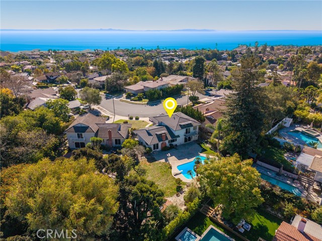 Amazing opportunity! Rare 5-bedroom pool home tucked at the end of a quiet cul-de-sac in the desirable Mesa Palos Verdes neighborhood of Rancho Palos Verdes. This spacious 2,468 sq. ft. residence sits on an expansive 11,360 sq. ft. lot offering privacy, a large flat backyard, and excellent outdoor living potential. Inside, the home features a bright kitchen with double-pane windows, generously sized living and dining areas with a brick fireplace, and updated flooring in the main living room. Sliding doors open to the backyard oasis with a sparkling pool, patio space, mature landscaping, and plenty of room to expand or design your ideal outdoor retreat. Home needs some cosmetic upgrades however in overall great condition. Additional highlights include solar panels, five true bedrooms, and an attached two-car garage, providing flexible space for work, guests, fitness, or hobbies. Has some ocean view off of the front of the house. Conveniently located near award-winning Palos Verdes schools, parks, shopping, trails, and the scenic coastline. A great opportunity to update, remodel, or reimagine a solid home in one of RPV’s most sought-after neighborhoods.