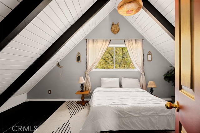 For those drawn to homes with character, story, and magic - The Crescent Manor awaits its next keeper. High on a quiet Crestline ridge where fog drapes the pines, the manor sits perched on a hill with a calm presence, feeling as if it were carved directly from the mountain’s spirit. A convenient level entry leads into this historic cabin, spanning 1,800 sqft, with 4 bedrooms and 3 baths. This is a sanctuary for artists, writers, and musicians seeking quiet, inspiration, and healing. Over the years, creative souls have fled to this home to escape the noise and pressures of city life. The current owner restored the home lovingly with the intention to curate a space that fosters creativity and a connection to one’s highest purpose. Inside, each room has a distinct energy. Upstairs you’ll find two A-frame bedrooms with an updated bathroom. On the main floor is an office or fourth bedroom with its own private bathroom that has an incredible tub and a mature walnut tree just outside the window. The primary suite on the lower level offers space for a king bed and features a private en-suite bathroom complete with a two-person shower, and built-in vanity. Epic views of Crestline can be found on the back deck where there’s a built-in outdoor bed for stargazing and moon worship. In the backyard you’ll find a 300 sqft insulated workshop with power; designed to be your personal sanctuary for creation. It is a quiet space where ideas take shape in solitude and the presence of past creatives still lingers. Though wrapped in serenity, the location delivers practical ease: walking distance to the lake, Goodwin’s market, and the Thousand Pines trail, with an easy commute to the cities below. Modern comforts, including a new electrical panel, new dishwasher, fiber-optic internet availability, and an EV charger blend seamlessly into the home’s timeless atmosphere. The neighborhood itself is a rare gem in Crestline. This street with no thru traffic houses long-established residents who cherish the peace and quiet but will also lend a hand when it’s needed. Close to town yet sheltered by calm, this home is truly a haven for creatives. Come and see if perhaps you are meant to be the next steward of this sacred space.
