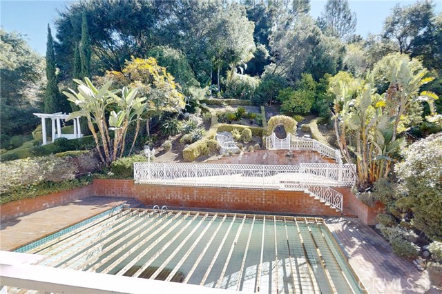 Stunning 5 bedroom, 4 bathroom pool home available in the desirable Altos De Monterey neighborhood of South Pasadena, just 5 minutes walking distance from Monterey Hills Elementary School! This beautiful two-story home features an elegant living room with a cozy fireplace and an adjacent dining room, each with French doors to the backyard. The bright, airy kitchen features high-end, built-in appliances, a large island for prep work and serving, tons of cabinet space and a separate breakfast area. One downstairs bedroom, conveniently located near a full hall bath, is ideal for use as a home office, guest room, or in-laws quarters. Upstairs, there is a huge family room with vaulted ceilings and a fireplace, an impressive primary suite with balcony and walk-in closet with custom organizers. Three additional bedrooms upstairs, one with its own private bathroom. There is also a shared balcony overlooking the backyard. Outside is a private hillside retreat, featuring a generous brick patio, pool, tiered garden terraces, lush landscaping, and pathways that create a serene and private escape. NO REAR NEIGHBORS!!! Located near award-winning South Pasadena schools, local restaurants, and shops, this home offers the perfect blend of comfort, elegance, and community. Come experience the best of South Pasadena living! To help visualize this home’s floor plan and to highlight its potential, virtual furnishings may have been added to photos found in this listing.