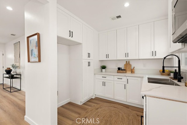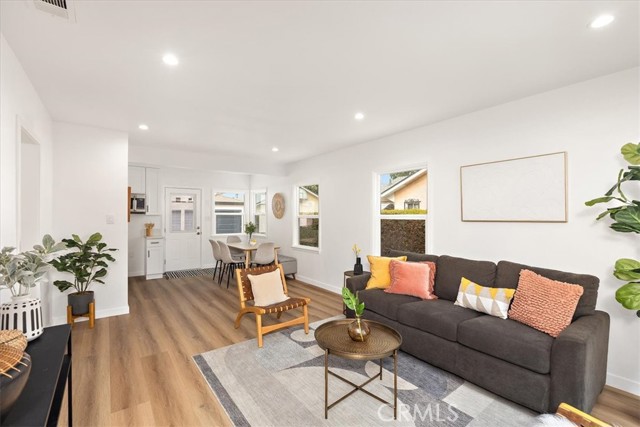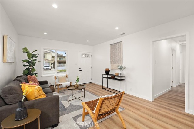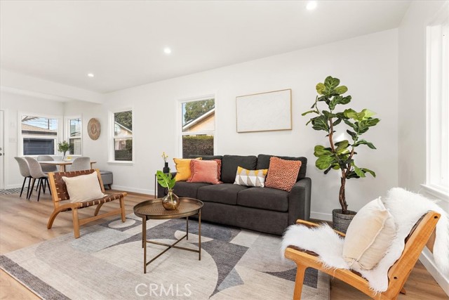 Welcome to this charming 3 bedroom 2 bathroom home fully remodeled in the City of Norwalk. Enjoy an open layout with plenty of natural light. New double pane windows throughout the house. New interior and exterior paint, new flooring, recessed lights, new kitchen cabinets and fixtures. For convenience, stackable washer and dryer hooks up located in the hallway. A new full guest bathroom and a fully remodeled restroom in the master bedroom. Home is equipped with central AC and heating. Long driveway that leads to a 2 car garage with an attached enclosed patio. A spacious backyard with ADU potential. Located in heart of Norwalk near Norwalk Town Square, In-n-out, Starbucks, and the new Milagros cinema.